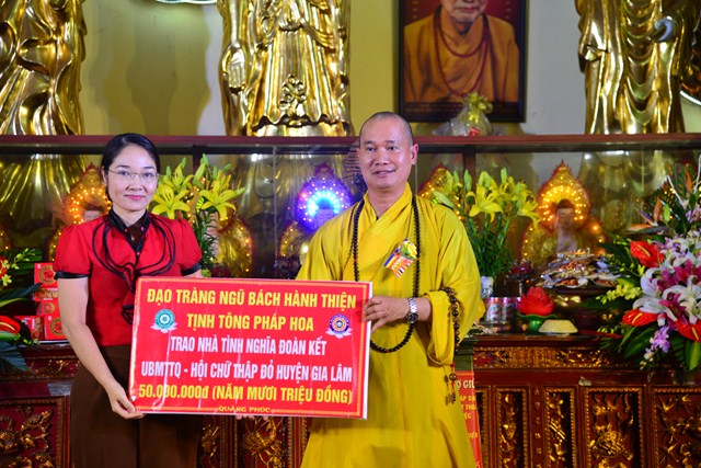 Nhân dịp đại lễ Vu Lan Báo Hiếu PL. 2563, Đại đức Thích Quảng Hiếu – Đại diện cho Đạo tràng Ngũ Bách Hành Thiện chùa Dương Đình đã trao số tiền 50 triệu đồng cho đại diện Hội chữ thập đỏ xã Dương Xá, huyện Gia Lâm, thành phố Hà Nội để xây nhà tình nghĩa cho người nghèo, không nơi nương tựa đang sinh sống tại huyện nhà.