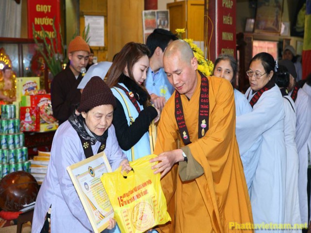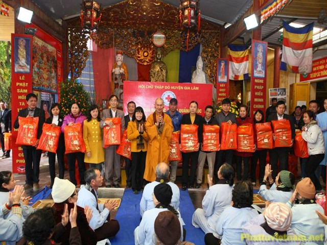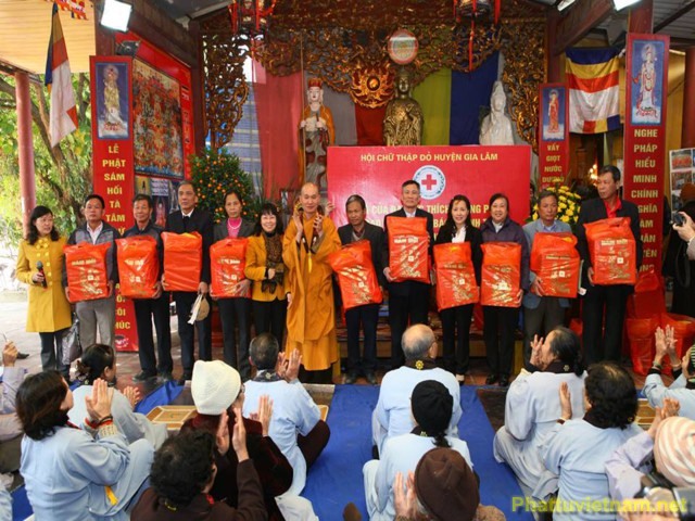 Nhân dịp này, Đạo tràng Ngũ Bách Hành Thiện kết hợp cùng UBMTTQ và Hội chữ thập đỏ huyện Gia Lâm đã trao quà tết cho các Phật tử tinh tấn trong đạo tràng và trao quà từ thiện cho các học sinh thuộc hộ nghèo trong huyện.Các món quà tuy nhỏ bé nhưng thể hiện được tinh thần từ bi, cứu khổ, ban vui trong đạo Phật, cũng như đem lại nhiều niềm vui cho bà con Phật tử, để bà con Phật tử vơi đi những khó khăn trong cuộc sống và ăn một cái tết cổ truyền thật vui vẻ, ấm cúng, hạnh phúc.
