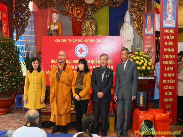 Về phía khách mời chính quyền có Bà Đặng Thị Kim Diệp – Phó Chủ tịch Hội chữ thập đỏ thành phố Hà Nội, ông Lê Xuân Thường – Phó chủ tịch UBMTTQ huyện Gia Lâm; Bà: Đào Thúy Quỳnh – Chủ tịch Hội chữ thập đỏ huyện Gia Lâm cùng các cấp chính quyền, các ban ngành, đoàn thể sở tại, các em học sinh,sinh viên một số trường lân cận cùng đông đảo Phật tử và nhân dân địa phương