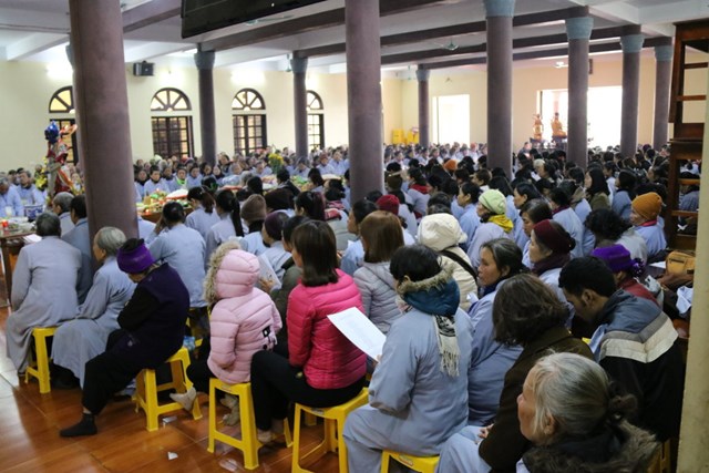 Sau báo cáo tổng kết của thư kí đạo tràng, Đại Đức trụ trì có đôi lời cảm ơn đến Phật tử gần xa, các mạnh thường quân trong và ngoài nước đã trợ duyên cùng Chùa Hòa Phúc trong thời gian qua, đồng thời sách tấn hàng đệ tử phải vững bước hơn trên con đường tu tập, xứng đáng là người phật tử chân chính. Thầy nhắc nhở đạo tràng, không những duy trì số lượng mà còn phải duy trì chất lượng tu học, tự nhìn nhận lại hành động lời nói suy nghĩ của mình có phù hợp với nhân quả báo ứng hay chưa. Hơn nữa, các phật tử cố gắng giáo hóa thành viên trong gia đình để chúng ta có thêm những người bạn đồng tu cùng nhau vững bước trên con đường tu học. Tinh thần tu học của Phật tử chính là động lực để quý Thầy cố gắng hơn trên con đường hoằng pháp, lợi sinh của mình.