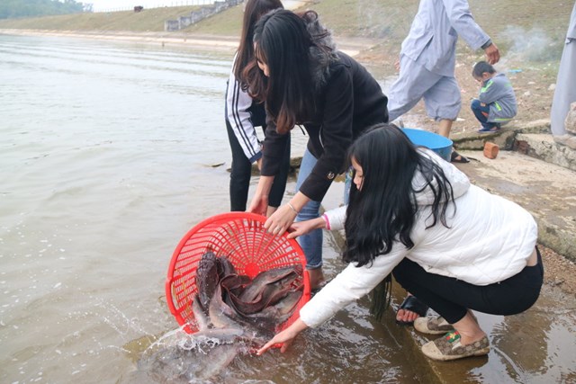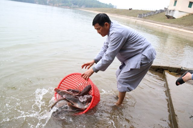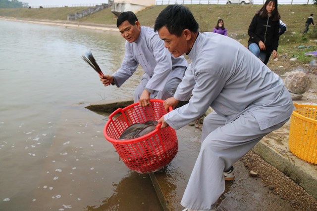 Buổi chiều cùng ngày, Đại Đức trụ trì cùng toàn thể đạo tràng chùa Hòa Phúc đã làm lễ phóng sinh cho hơn 5 tấn cá được hòa mình cùng với thiên nhiên.