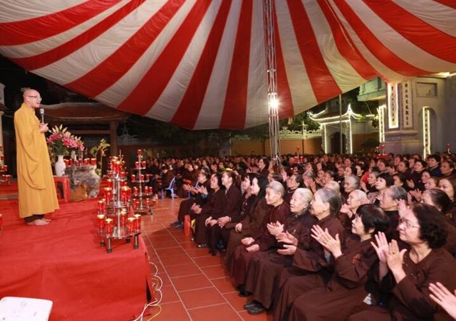 Thời khắc linh thiêng nhất của buổi lễ đã đến khi những tiếng niệm danh hiệu Đức Bản Sư Thích Ca Mâu Ni Phật được vang lên, làm xua tan màn vô minh si ám, cả đạo tràng lắng đọng tâm tư, thầm nguyện với lòng mình sẽ cố gắng noi theo tấm gương của Ngài, cố gắng thực hành theo đúng lời dạy của Ngài để có một cuộc sống an lạc ngay ở đời hiện tại.