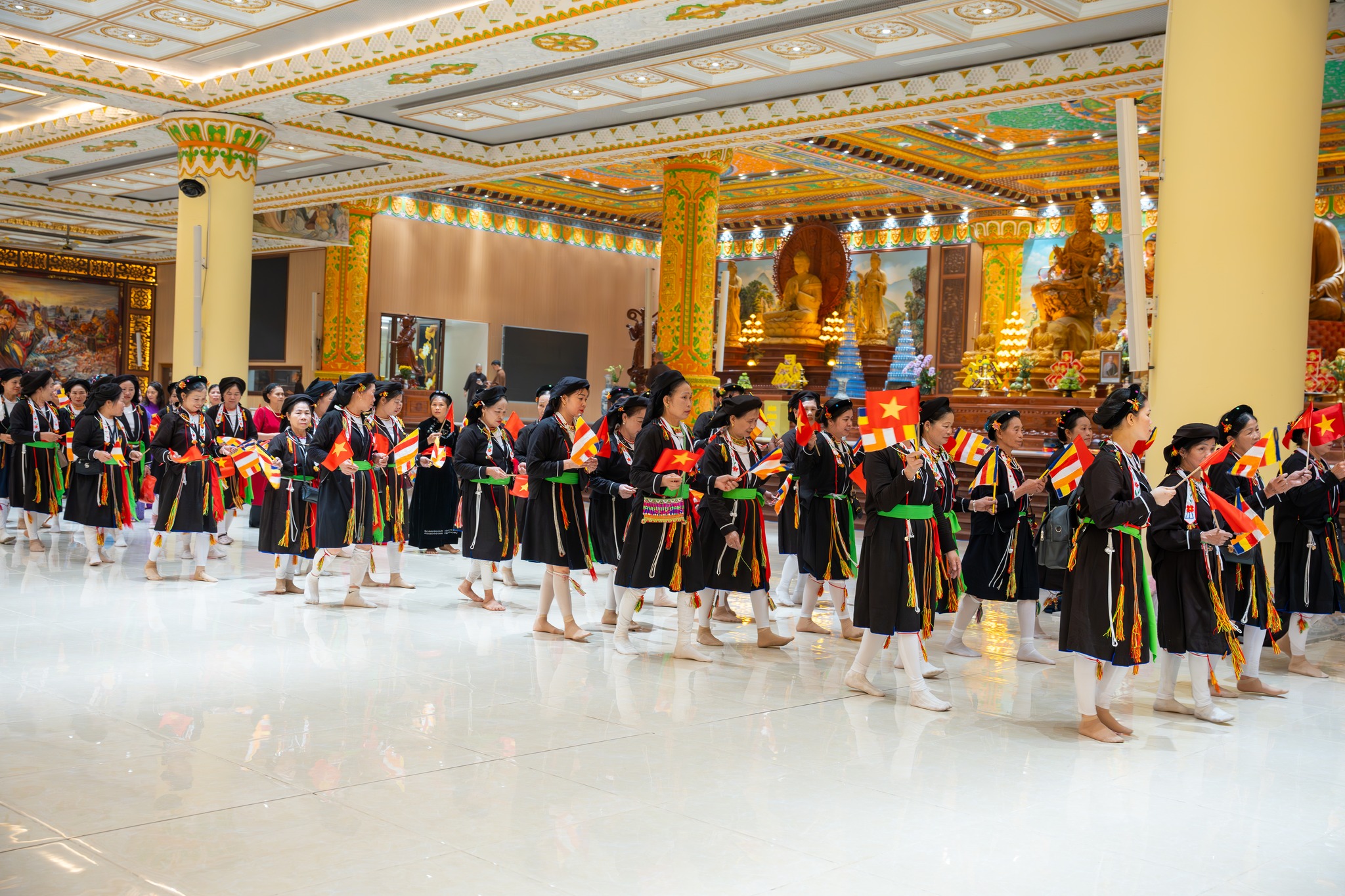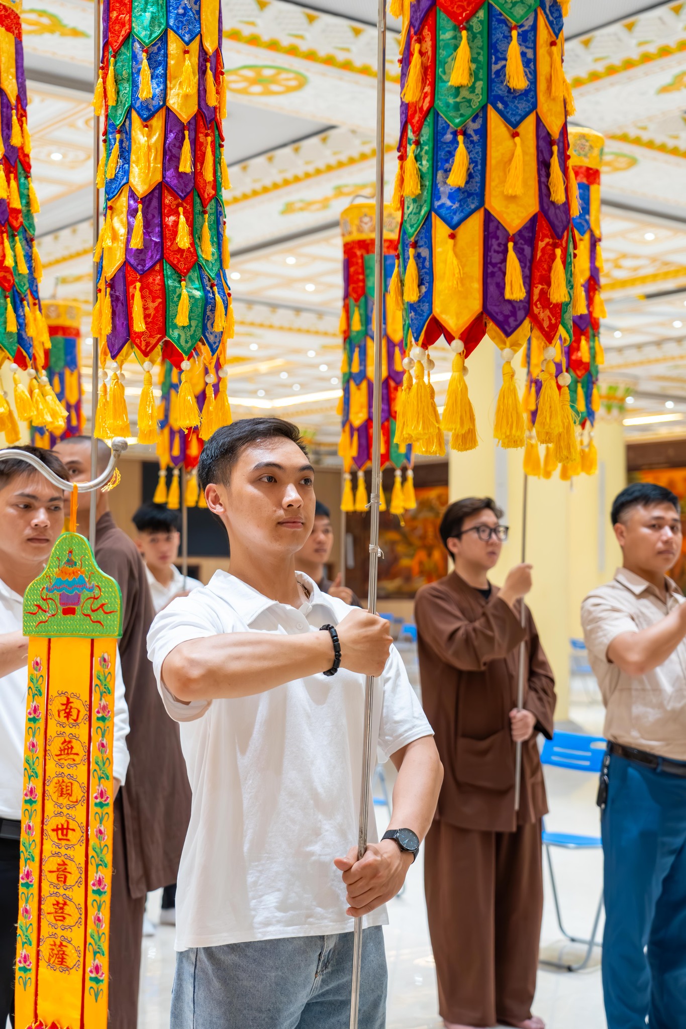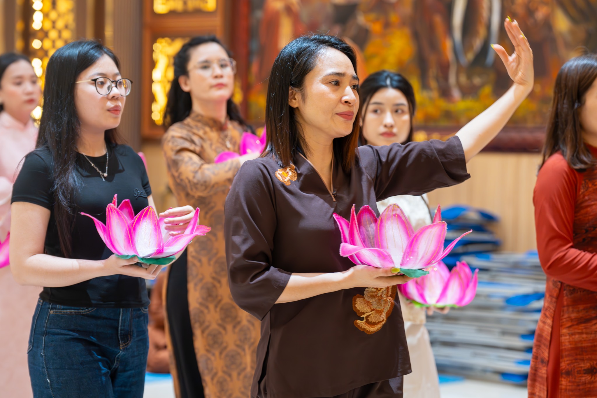 Tham gia buổi diễn tập có gần một nghìn Phật tử đến từ nhiều đạo tràng trên địa bàn Hà Nội và các tỉnh lân cận. Các đội hình rước, gồm nhóm cờ hoa, nhóm Phật tử dân tộc, nhóm rải hoa cúng dường… được tổ chức sắp xếp chặt chẽ, di chuyển đồng bộ theo trình tự nghi lễ, giữ sự trang nghiêm xuyên suốt quá trình tập luyện.