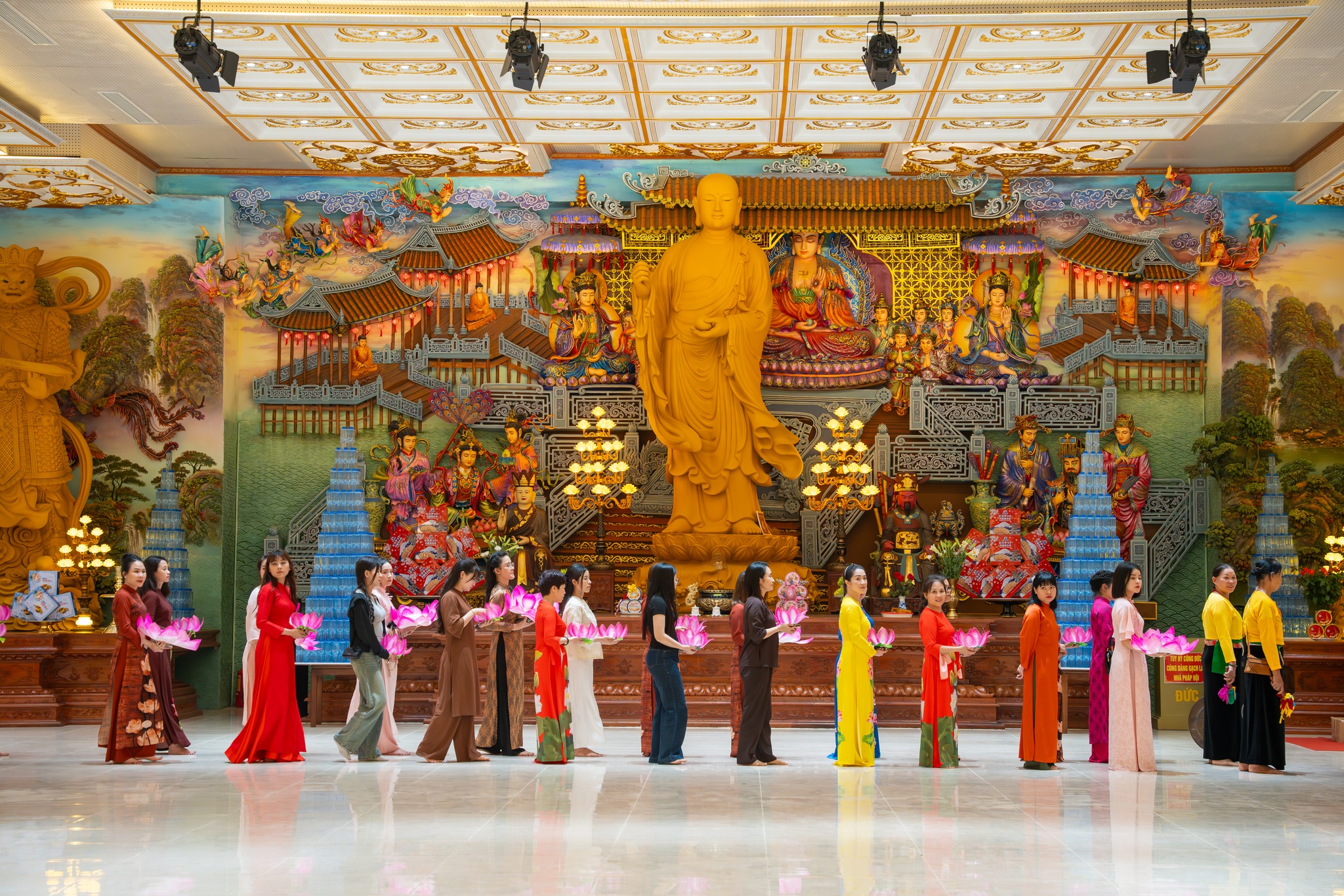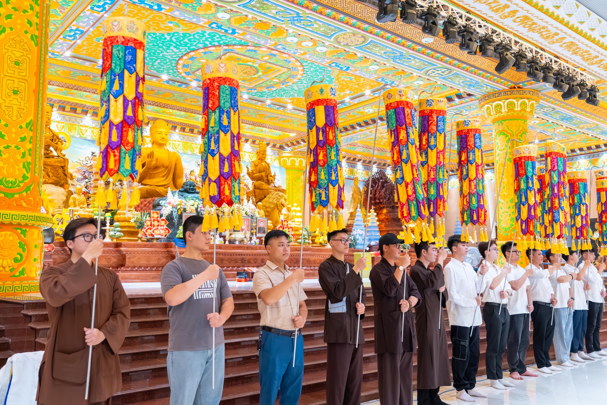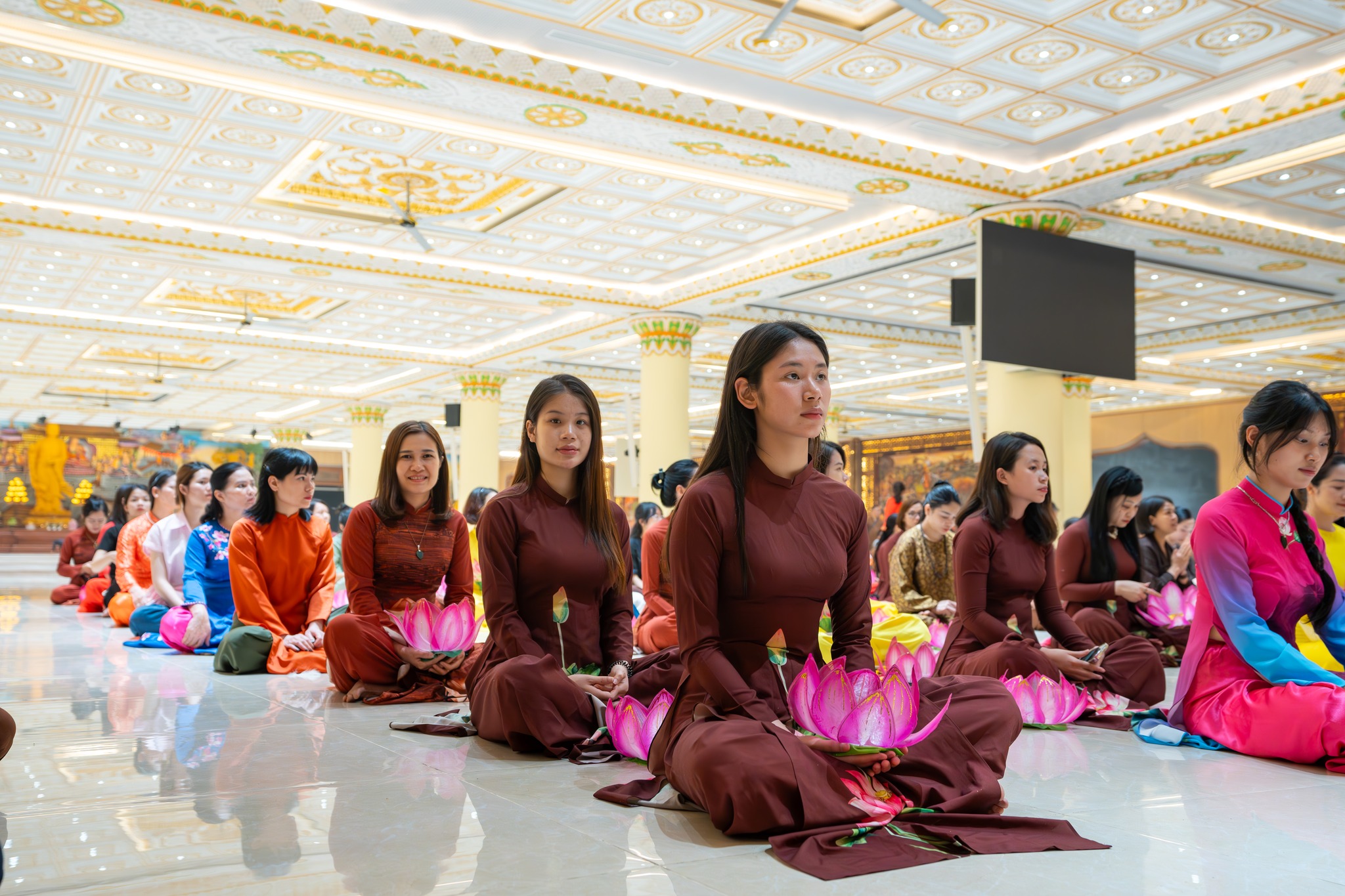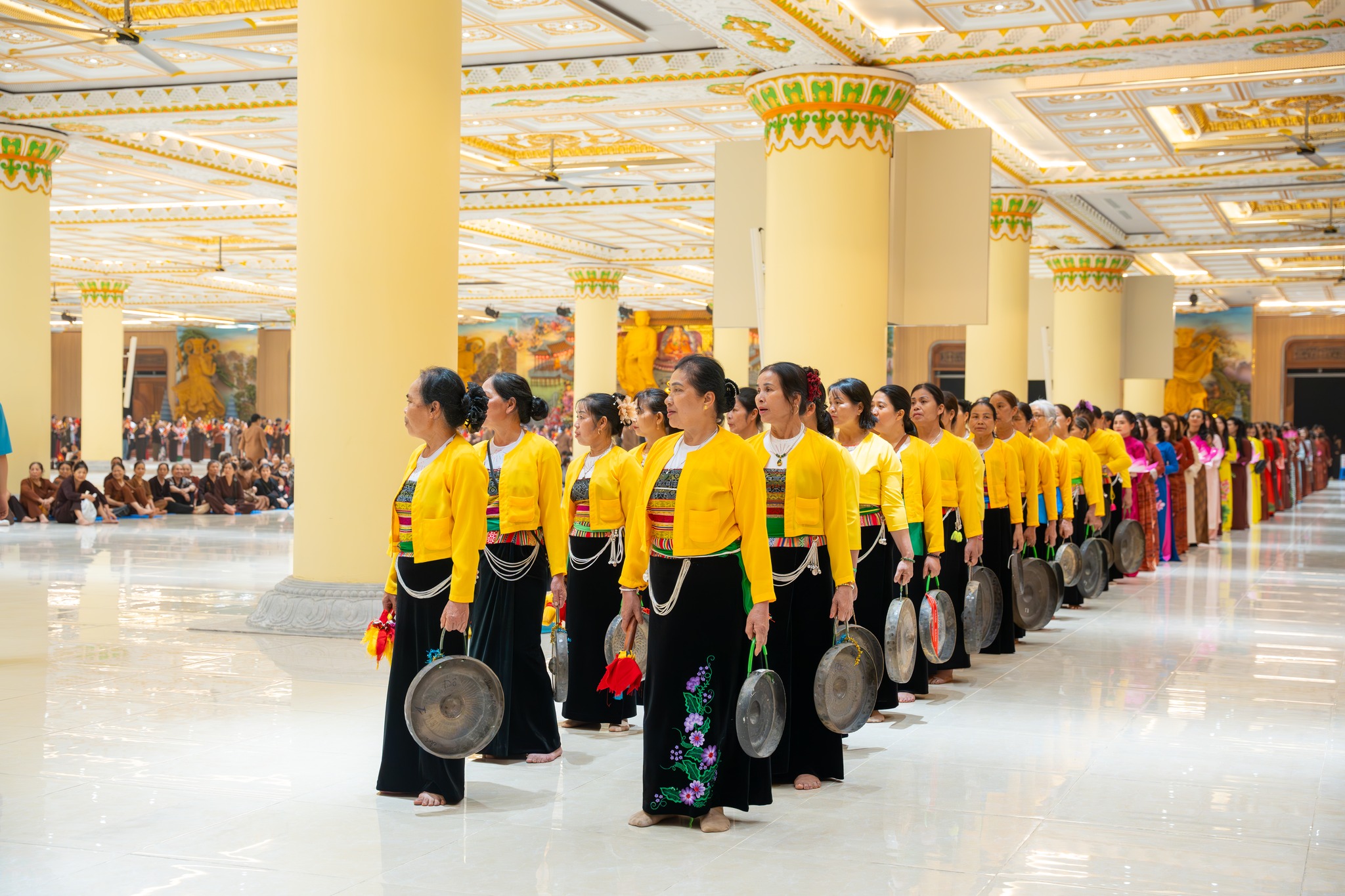 Tham gia buổi diễn tập có gần một nghìn Phật tử đến từ nhiều đạo tràng trên địa bàn Hà Nội và các tỉnh lân cận. Các đội hình rước, gồm nhóm cờ hoa, nhóm Phật tử dân tộc, nhóm rải hoa cúng dường… được tổ chức sắp xếp chặt chẽ, di chuyển đồng bộ theo trình tự nghi lễ, giữ sự trang nghiêm xuyên suốt quá trình tập luyện.