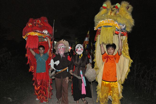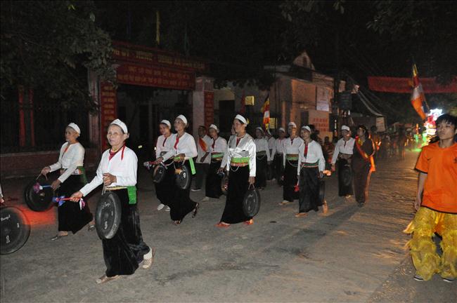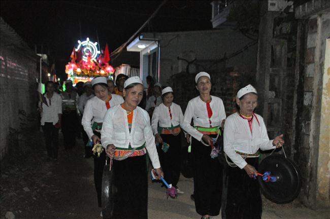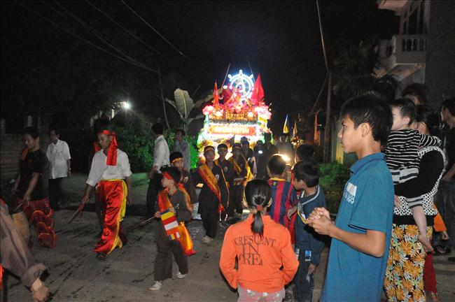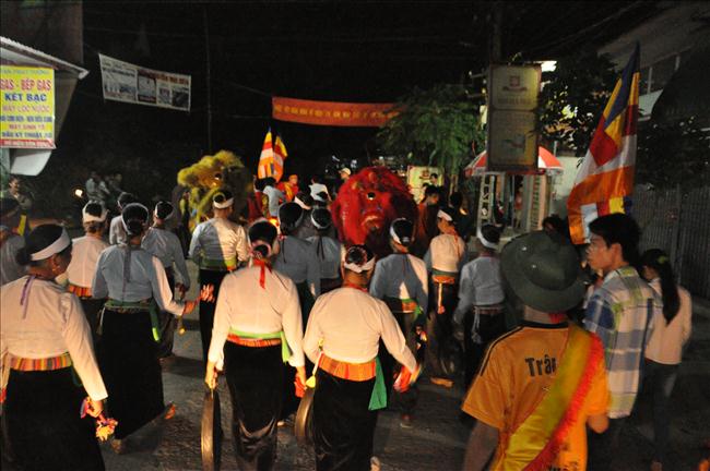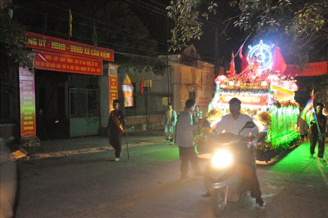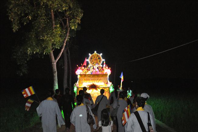 Đoàn rước khởi hành từ 18h bắt đầu từ chùa Kim Long vào các làng. Với trống, chiêng, âm nhạc, và xe hoa rực rỡ, lung linh, đoàn rước đi đến đâu không khí ở khu vực đó trở nên vui vẻ, nhộn nhịp, nhân dân bản địa từ các cụ già, thanh niên cho tới các cháu thiếu nhi đều nô nức hân hoan cùng nhau xem rước Phật với sự niềm nở xen lẫn cả chút háo hức tò mò, ngắm nghía khi đoàn rước đi qua.