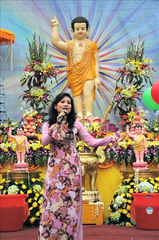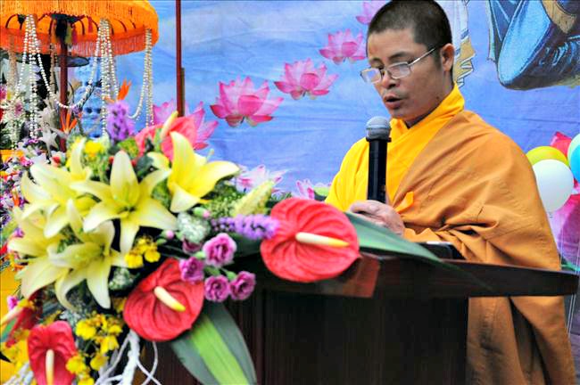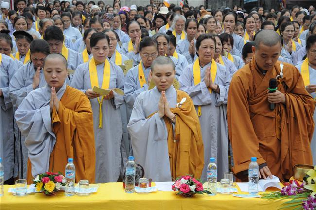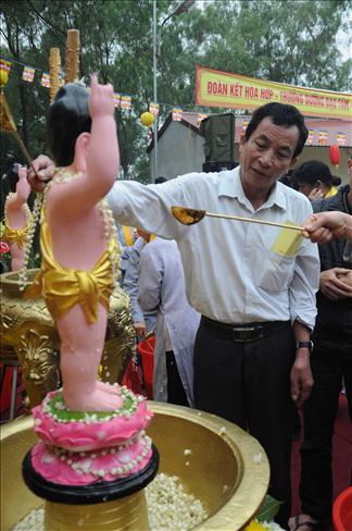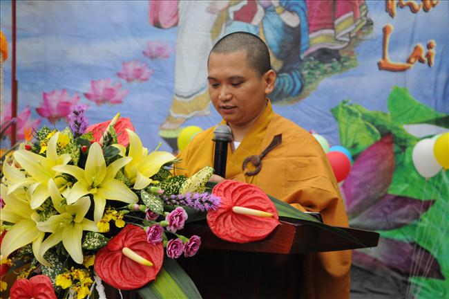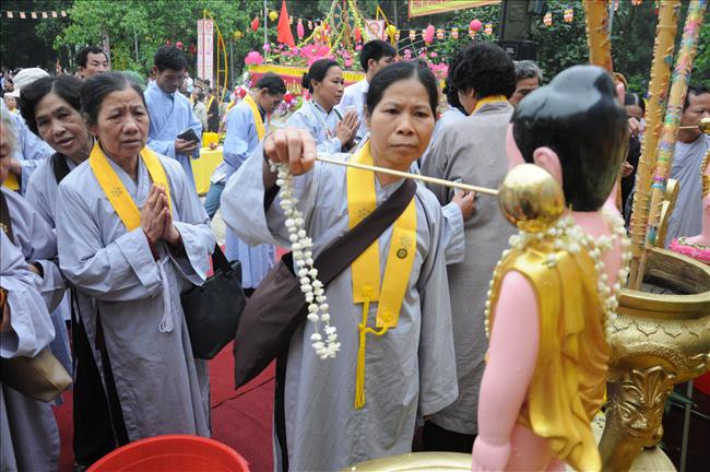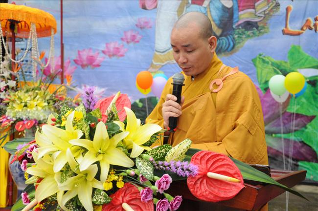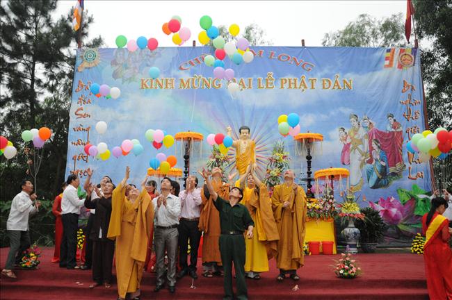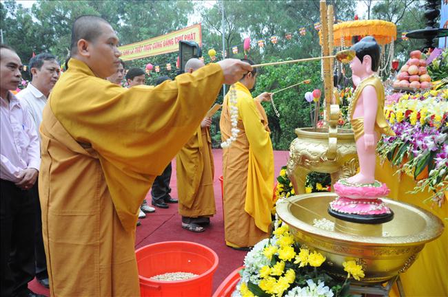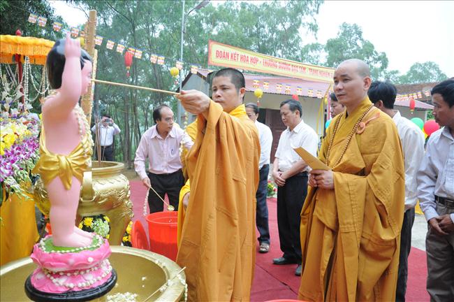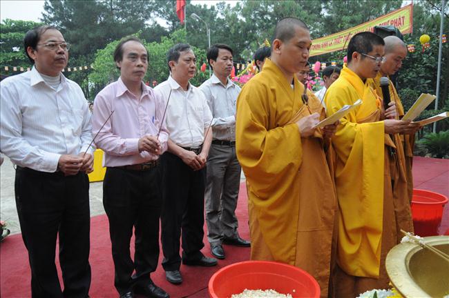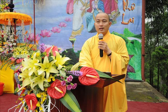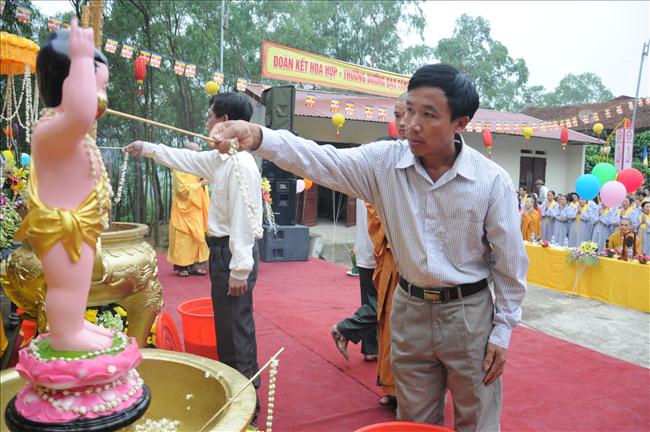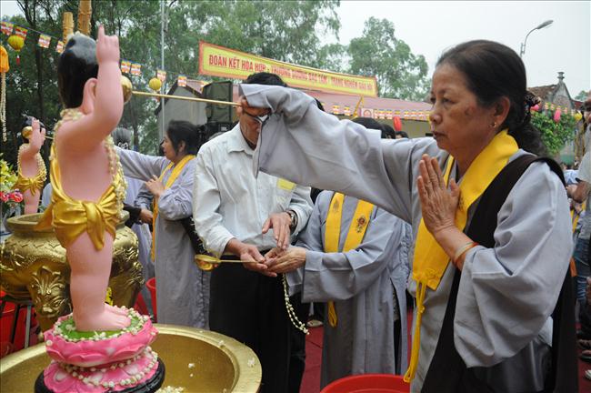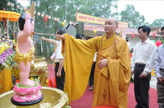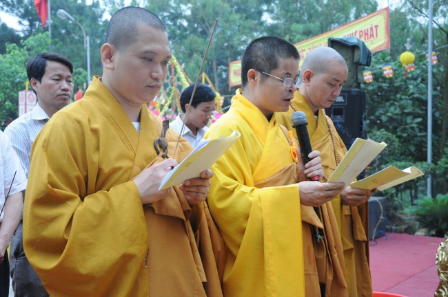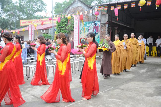Đúng 8h00, chính thức cử hành Đại lễ khánh đản. Mở đầu, Đại đức Thích Thanh Hồi tuyên đọc Thông điệp Phật đản của đức Pháp chủ GHPGVN. Tiếp theo, Đại đức Thích Quảng Phú – Uv BTS GHPGVN thành phố Hà Nội, thư ký BTS GHPGVN huyện Thạch Thất đọc Diễn văn Đại lễ Phật đản của Thường trực Hội đồng trị sự TW GHPGVN. Tiếp đến, Đại đức Thích Quảng Tín – thư ký BTS GHPG quận Hoàng Mai đọc Ý nghĩa Phật đản. Sau đó, đại chúng tụng Kinh Khánh đản và làm lễ tắm Phật trong niềm tín kính Tam bảo, cầu nguyện thế giới an hòa, chúng sinh an lạc.