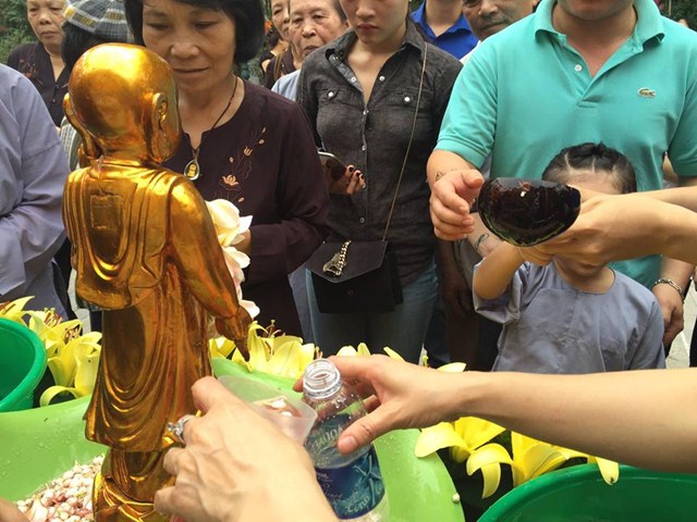 Trước khi kết thúc buổi lễ Chư tôn đức Tăng chùa Liên Phái đã cùng chính quyền địa phương, quý Phật tử gần xa và nhân dân địa phương đã cử hành nghi lễ niêm hương bạch Phật, cầu nguyện thế giới hòa bình, chúng sinh an lạc và lễ Mộc Dục ( tắm Phật) trong không khí trang nghiêm, thành kính, đại hoan hỷ nhân kỷ niệm ngày đức Từ Phụ Thích Ca Mâu Ni đản sinh với mong muốn mỗi chúng ta hãy gột rửa thân tâm của mình để cúng dàng lên đức Bản Sư Thích Ca Mâu Ni Phật. Đây là món quà thiết thực nhất kính dâng lên Ngài và chúc mừng sinh nhật Ngài.