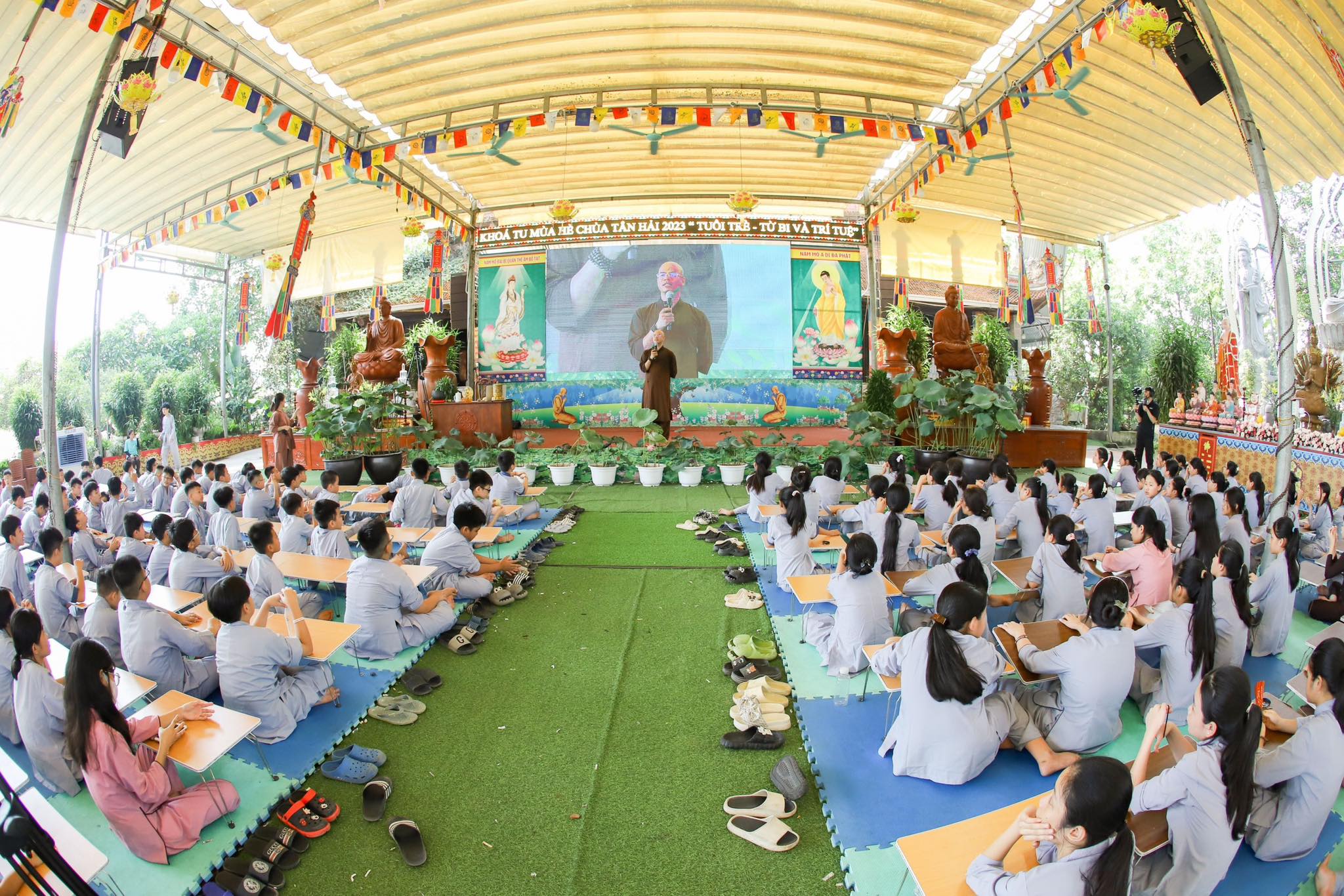 Khóa tu mùa hè năm 2023 tại chùa Tân Hải đã được khai mạc vào sáng ngày 19/06/2023 ( nhằm ngày 2/5 năm Quý Mão). Sau 5 ngày tu học, các bạn trẻ đã gặt hái được nhiều thành quả tốt đẹp, với các bài học về uy nghi, phép tắc khi tới chùa, cách lễ Phật, lạy Phật, niệm Phật, tọa thiền, tụng kinh, kinh hành, phóng sinh, nghe thuyết giảng Phật pháp với đề tài về “ Tầm quan trọng của Đạo Phật với tuổi trẻ”; tham gia Game show tìm hiểu về giáo lý Phật Đà, những bài học về lòng biết ơn, lòng hiếu thảo, tâm từ bi, hạnh hỷ xả, những bài chia sẻ của các chuyên gia tâm lý học về kỹ năng sống. Đồng thời, được tham gia vào các hoạt động ngoại khóa như: Thi tô vẽ tranh về cuộc đời Đức Phật, tô vẽ tôn tượng chư Phật, chư Bồ Tát, luyện chữ đẹp thông qua việc chép lại “ Chú Đại Bi”, chơi các trò chơi dân gian mang đậm tính nhân văn sâu sắc, ôn lại những truyền thống quý báu của Dân tộc ta từ ngàn đời nay, rèn luyện sức khỏe qua các buổi hướng dẫn tập Yoga và được giao lưu, học hỏi với các bạn trẻ đồng trang lứa…