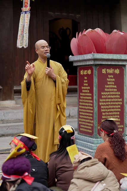 Đại đức Thích Quảng Hiếu chia sẻ cùng các Phật tử trước khi cử hành nghi thức cầu an đầu xuân