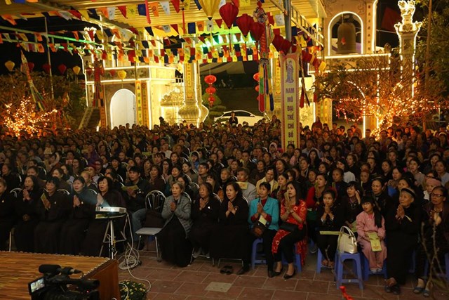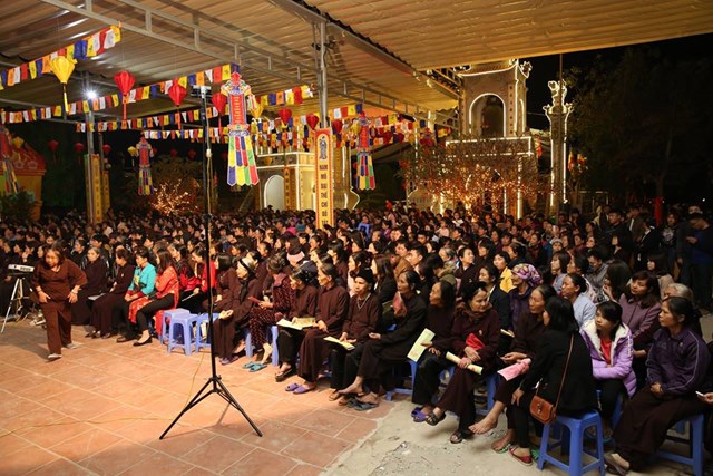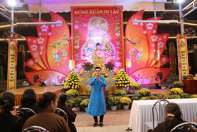 Sáng ngày mùng 5 tết đã chính thức diễn ra khóa lễ cầu nguyện Quốc thái dân an đầu xuân với sự tham dự của khoảng 3000 người đến từ các đạo tràng của thành phố Hà Nội và các tỉnh thành lân cận. Trước khi chính thức diễn ra buổi lễ cầu an, các Phật tử đã được đón nghe những ca khúc vui tươi chào xuân Di Lặc và được hòa mình vào 3 giá đồng trong tiết mục diễn xướng chầu văn do nghệ nhân Hoàng Tiến Hưng đến từ đoàn chèo Hà Nội thể hiện.