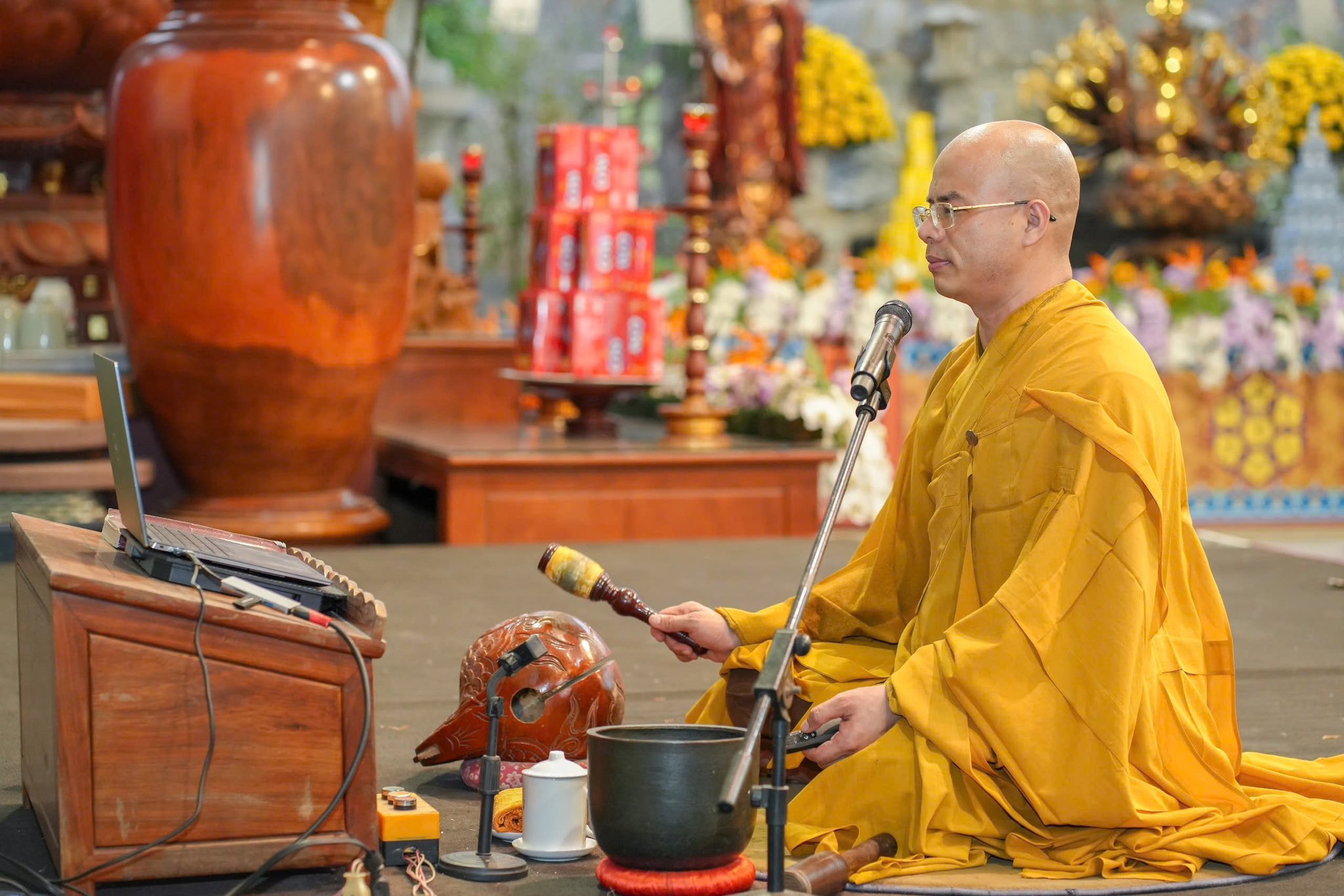 Chư tôn đức tụng kinh cầu nguyện tại buổi lễ