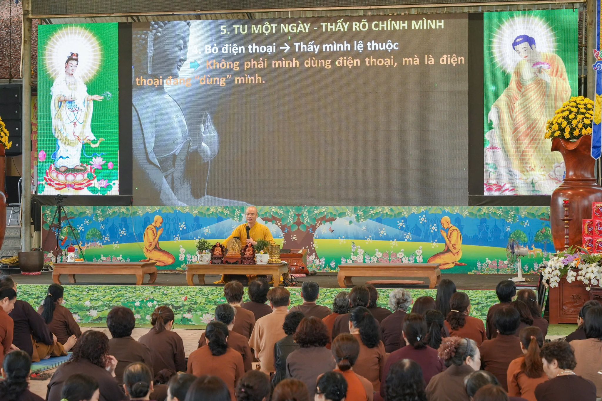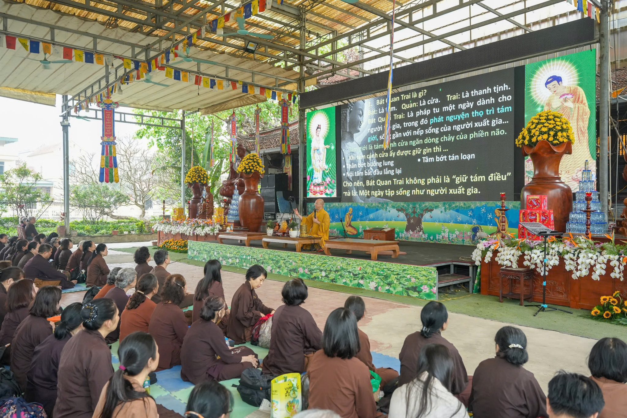 Đại đức Thích Quảng Hiếu chia sẻ cùng các Phật tử tại Khóa tu Bát Quan Trai
