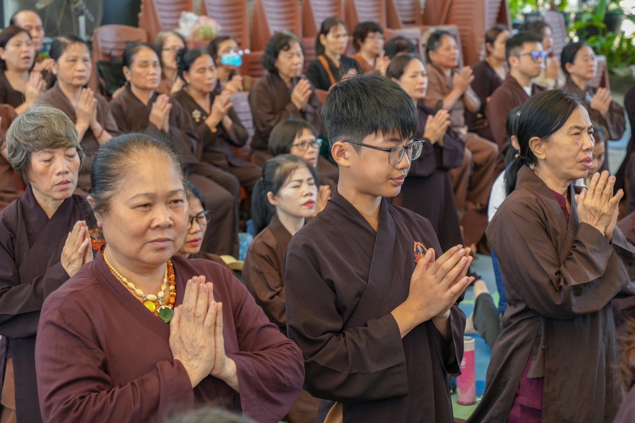 Đại đức Thích Quảng Hiếu cùng đại chúng tụng kinh cầu nguyện
