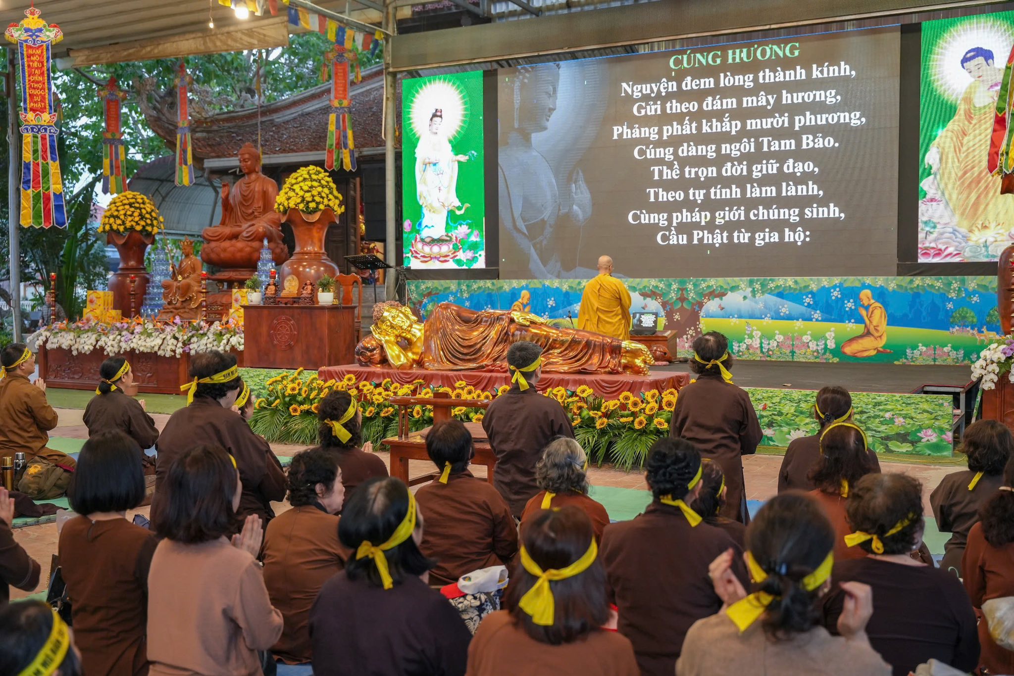 Trước khi kết thúc buổi lễ, toàn thể đại chúng đã dâng hương tưởng niệm nhân ngày Đức Bản Sư Thích Ca Mâu Ni nhập Niết bàn và niệm danh hiệu “Bản Sư Thích Ca Mâu Ni Phật”, hồi hướng công đức cầu nguyện cho âm siêu, dương khánh, thế giới hòa bình, chúng sinh an lạc, Phật pháp trường tồn.