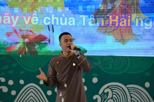 Trước khi chính thức bước vào buổi lễ là các tiết mục văn nghệ chào mừng với các ca khúc ca ngợi công hạnh của đấng từ phụ Thích Ca Mâu Ni – Người đã có công khai sáng ra đạo Phật và ca ngợi chư tăng – Người đã thay thế Đức Phật để giáo hóa chúng sinh, đưa chúng sinh tới gần với đạo Phật hơn, qua sự thể hiện của ca sỹ Phật tử Trần Duy Hưng và ca nương nhỏ tuổi nhất Việt Nam kỷ lục gia Tú Thanh.