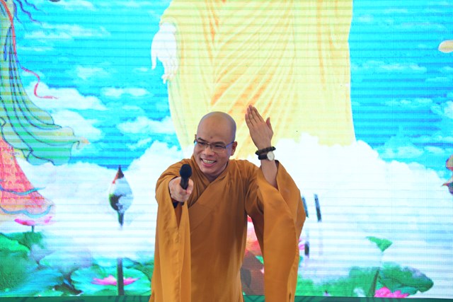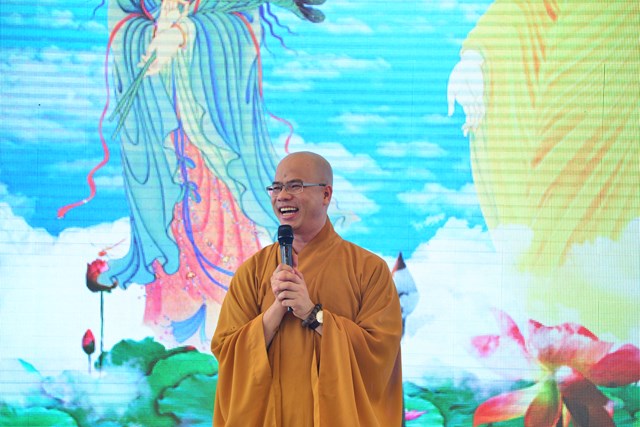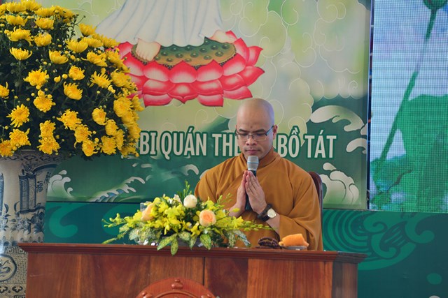 Đại đức Thích Quảng Hiếu điều hành buổi lễ