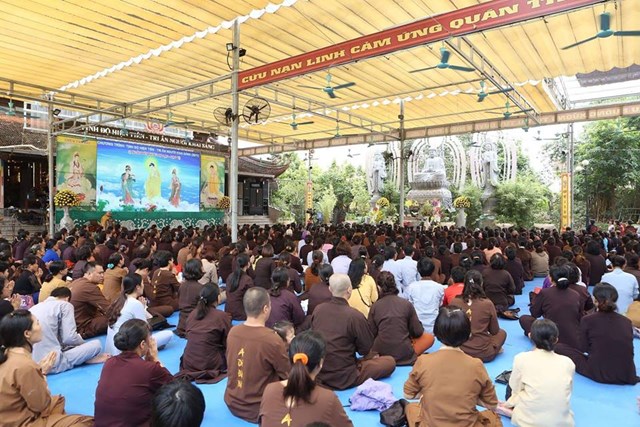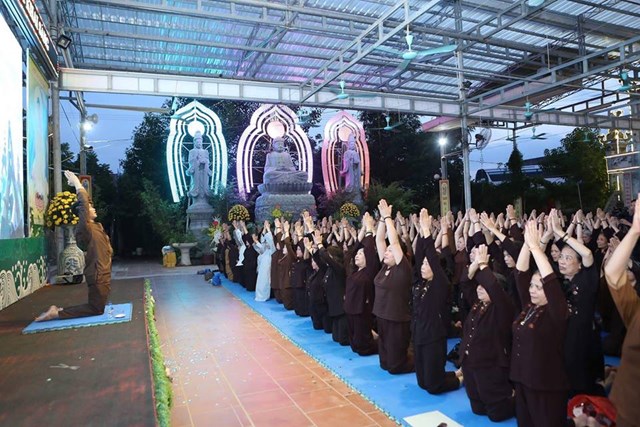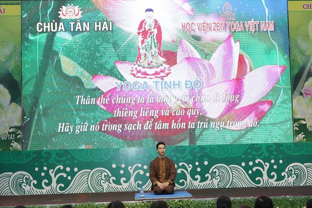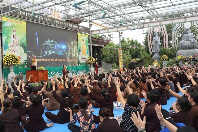 Buổi chiều cùng ngày, các Phật tử đã được tham dự khóa lễ tụng kinh “ Đại Bi Sám Pháp” cầu nguyện quốc thái dân an, Phật pháp được trường tồn và nghe những chia sẻ về YOGA Tịnh Độ của Phật tử Lê Hồng Thủy và Phật tử Hoàng Thái – Trưởng ban văn hóa chùa Tân Hải.