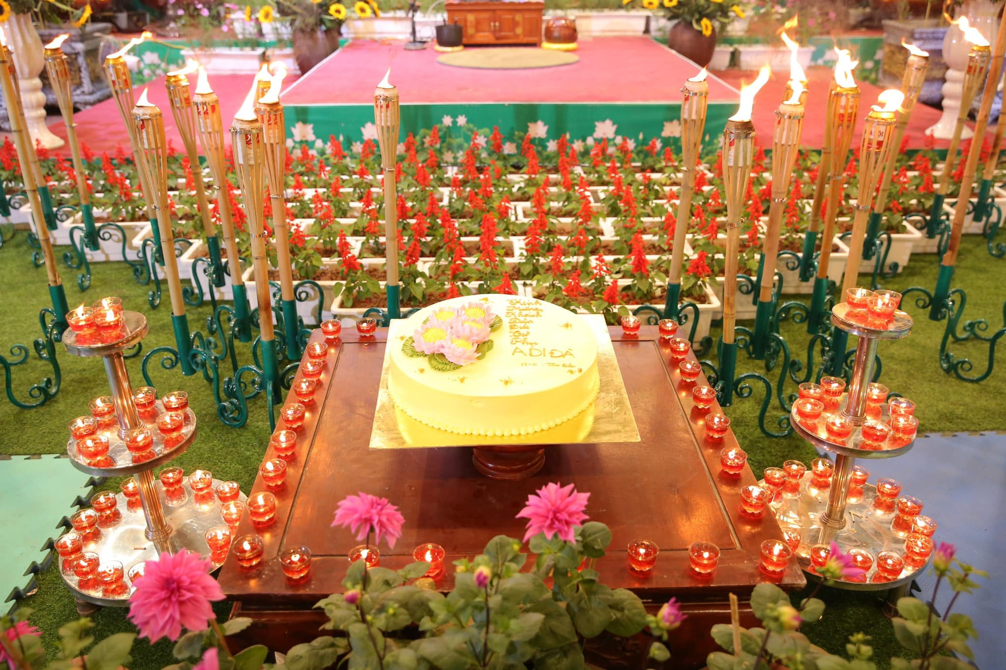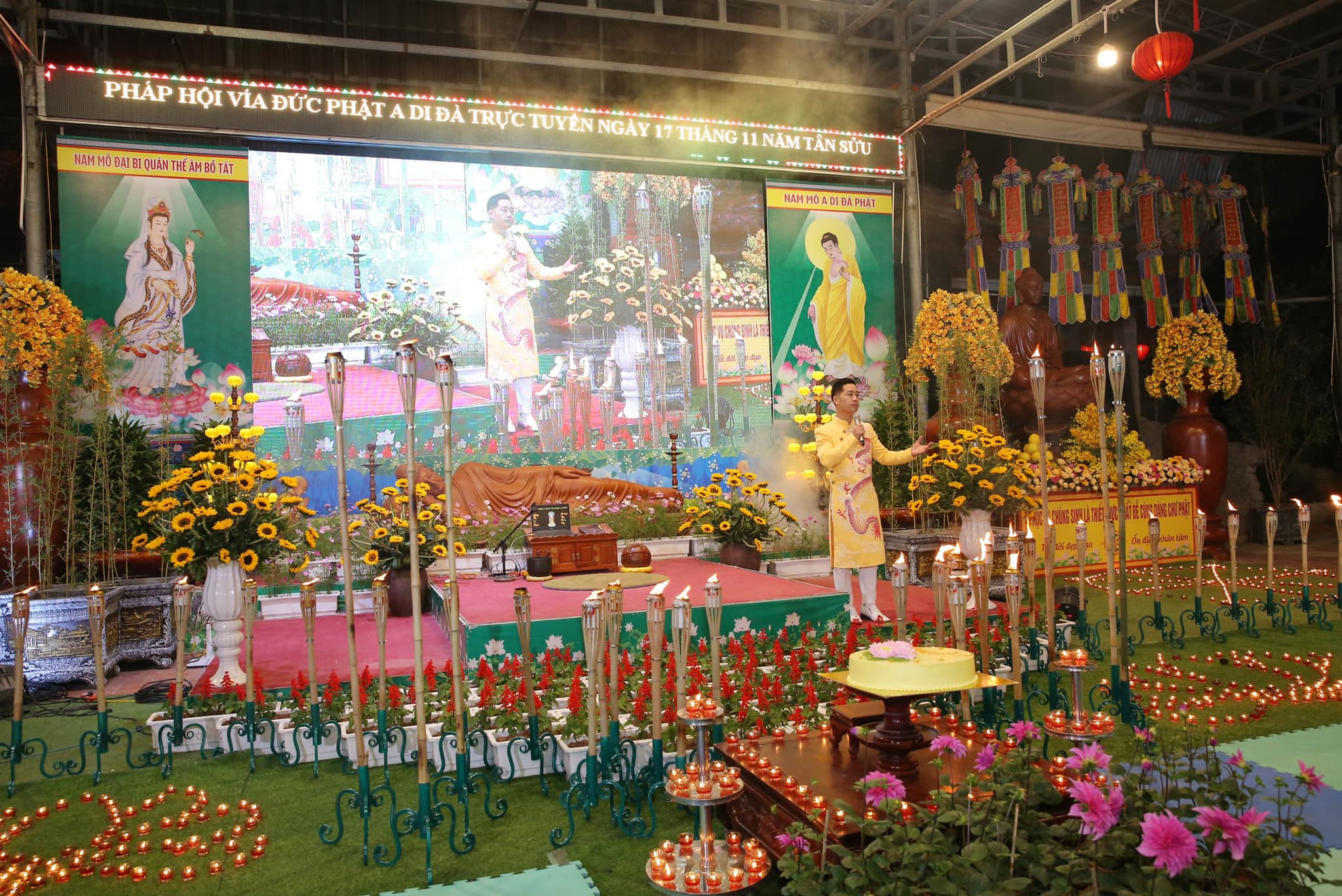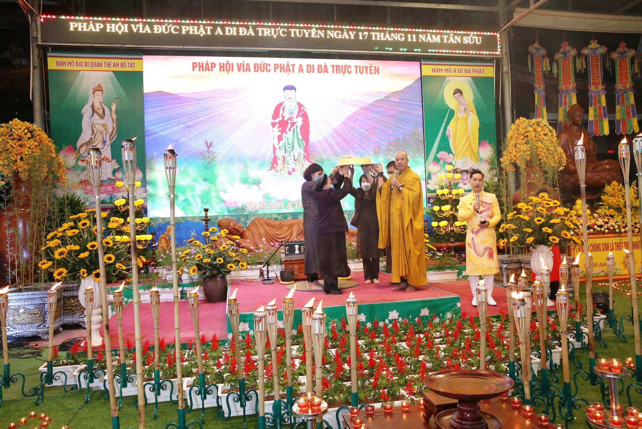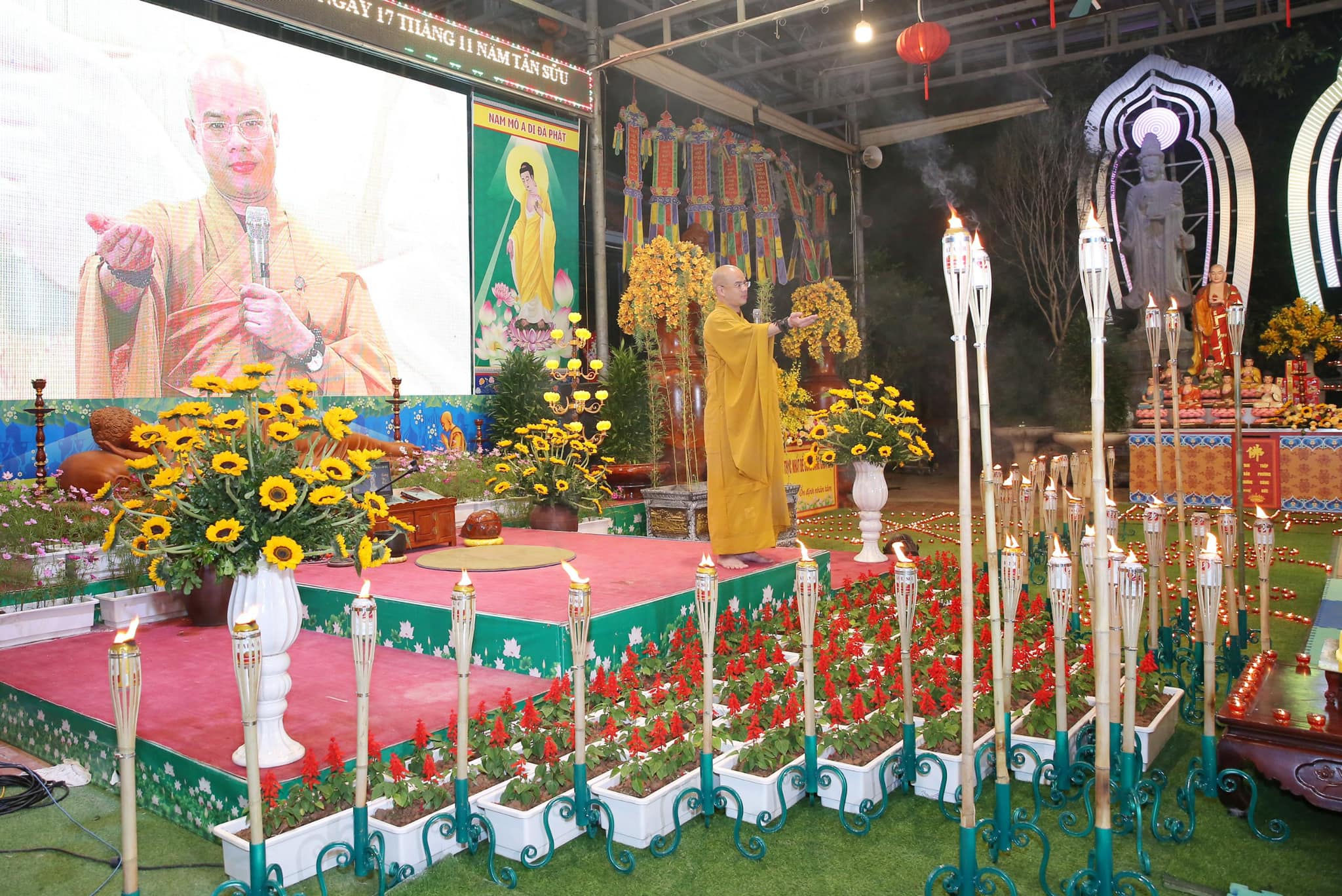 Trong khuôn khổ của buổi lễ, Ban tổ chức đã thắp sáng 48 ngọn đuốc, tượng trưng cho 48 đại nguyện độ sinh của Đức Phật A Di Đà, cùng hàng ngàn hoa đăng kính dâng lên Ngài nhân dịp khánh đản. Qua 48 lời đại nguyện của Ngài, mỗi chúng ta hãy tự soi lại mình trong suốt quá trình tu học, nguyện cố gắng nỗ lực, tinh tấn tu học, quyết một lòng vãng sinh về nước của Ngài, lấy câu Phật hiệu làm kim chỉ nam, làm hành trang trên bước đường tu nhân, học Phật.