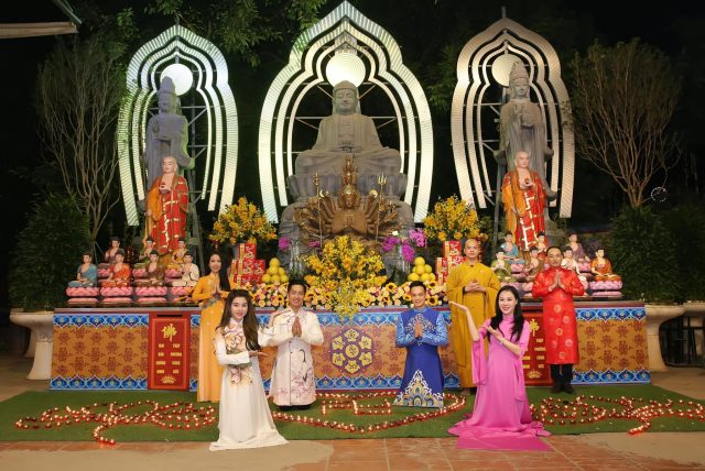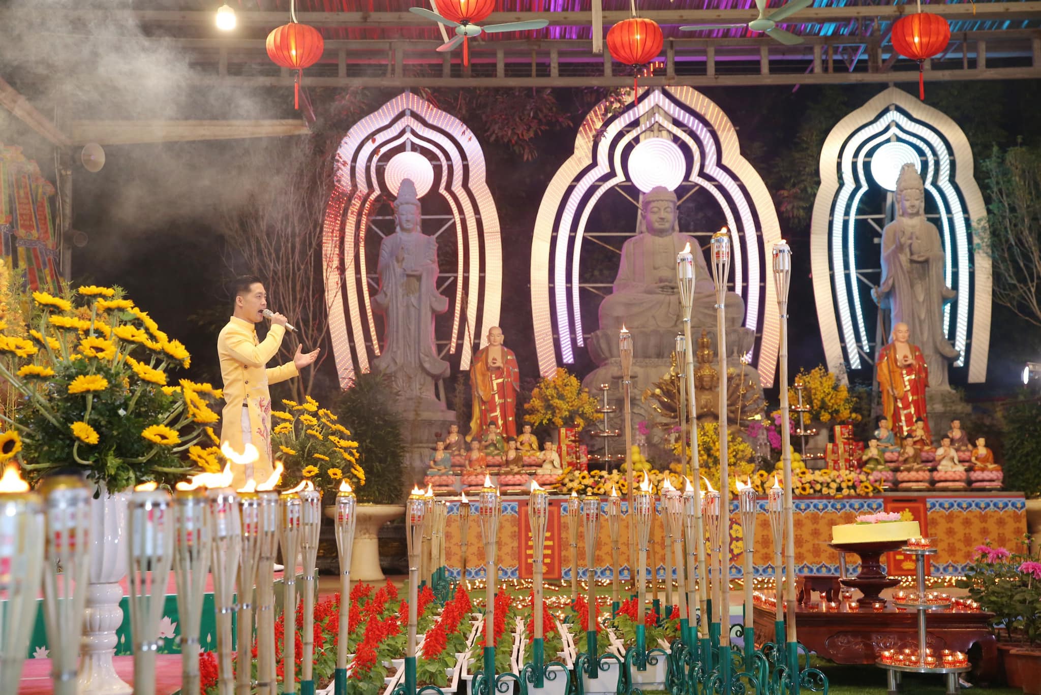 Trước khi chính thức diễn ra buổi lễ cầu nguyện, Ban văn nghệ chùa Tân Hải đã có một chương trình văn nghệ đặc sắc với chùm ca khúc ca ngợi công hạnh của đức Từ phụ A Di Đà, ca ngợi Chư Phật, Chư Bồ Tát dưới sự tham gia của các văn nghệ sỹ Phật tử phát tâm cúng dàng tại chùa Tân Hải từ nhiều năm qua như: MC Phật tử Lê Tuyết, Nghệ sỹ Nhật Tín, Nghệ sỹ Thu Thảo, ca sỹ Duy Hưng, ca sỹ Thục Chinh, nghệ sỹ Quốc Phòng, Nghệ sỹ Anh Tuấn…