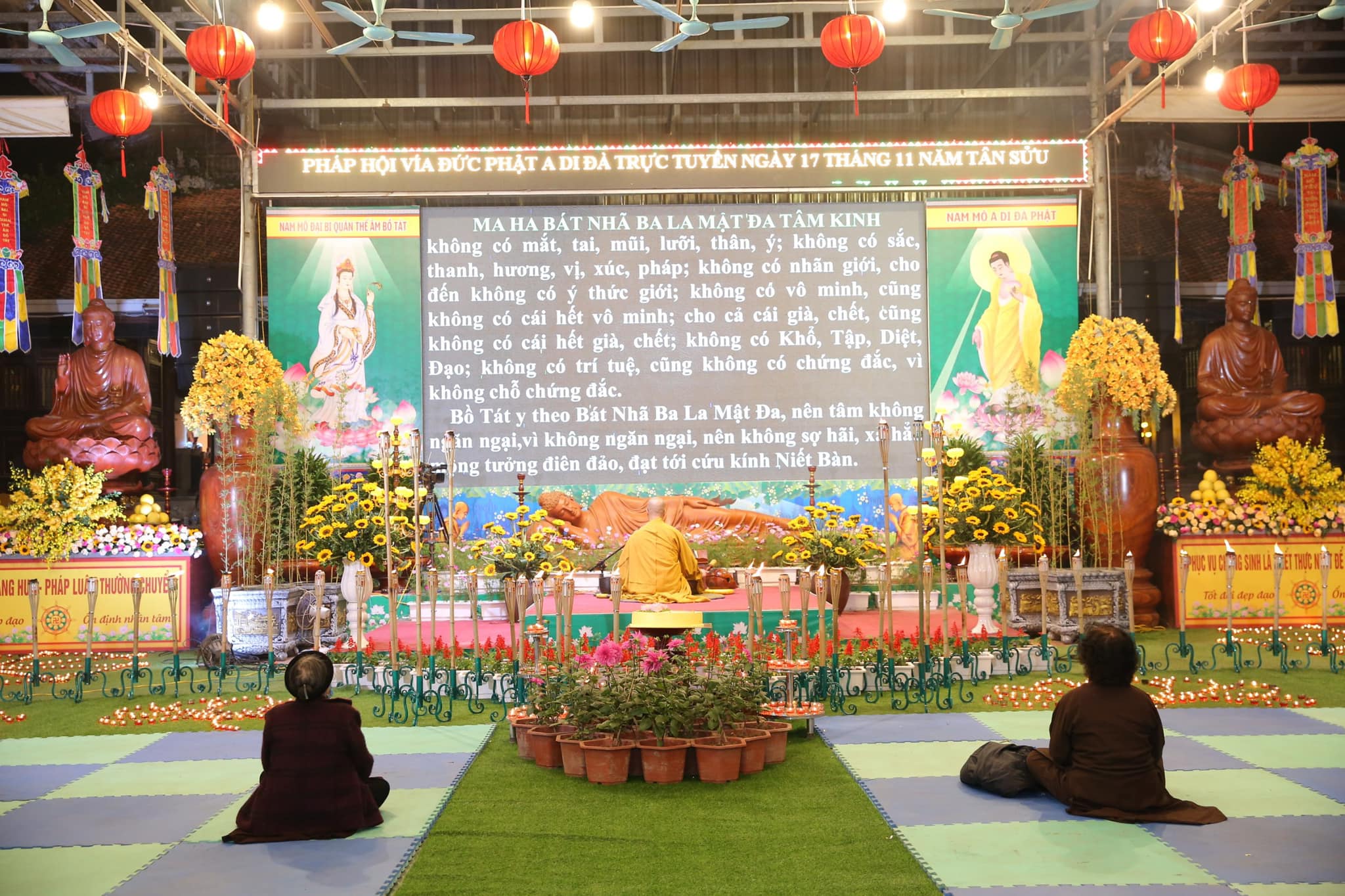 Tối qua ngày 17/11 năm Tân Sửu ( nhằm ngày 20/12/2021) nhân kỷ niệm Khánh đản Đức Phật A Di Đà, tại chùa Tân Hải, thông Phương Ngoại, xã Trung Châu, huyện Đan Phượng, thành phố Hà Nội đã diễn ra Pháp hội kính mừng khánh đản Đức Từ phụ A Di Đà PL. 2565 – DL. 2021 dưới hình thức trực tuyến, được phát trên kênh Phật sự của Đạo tràng chùa Tân Hải.