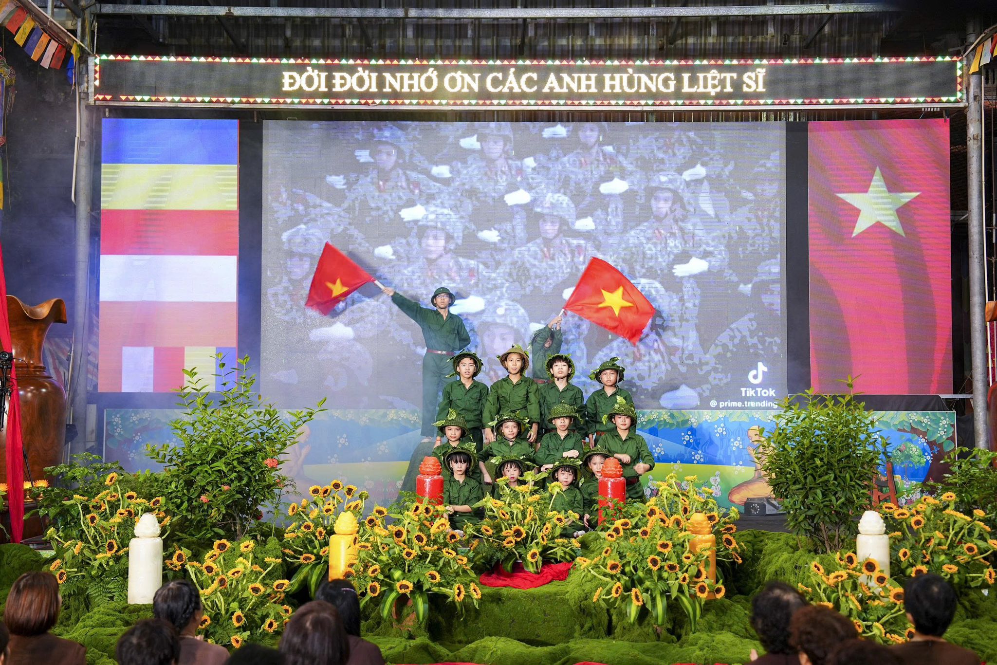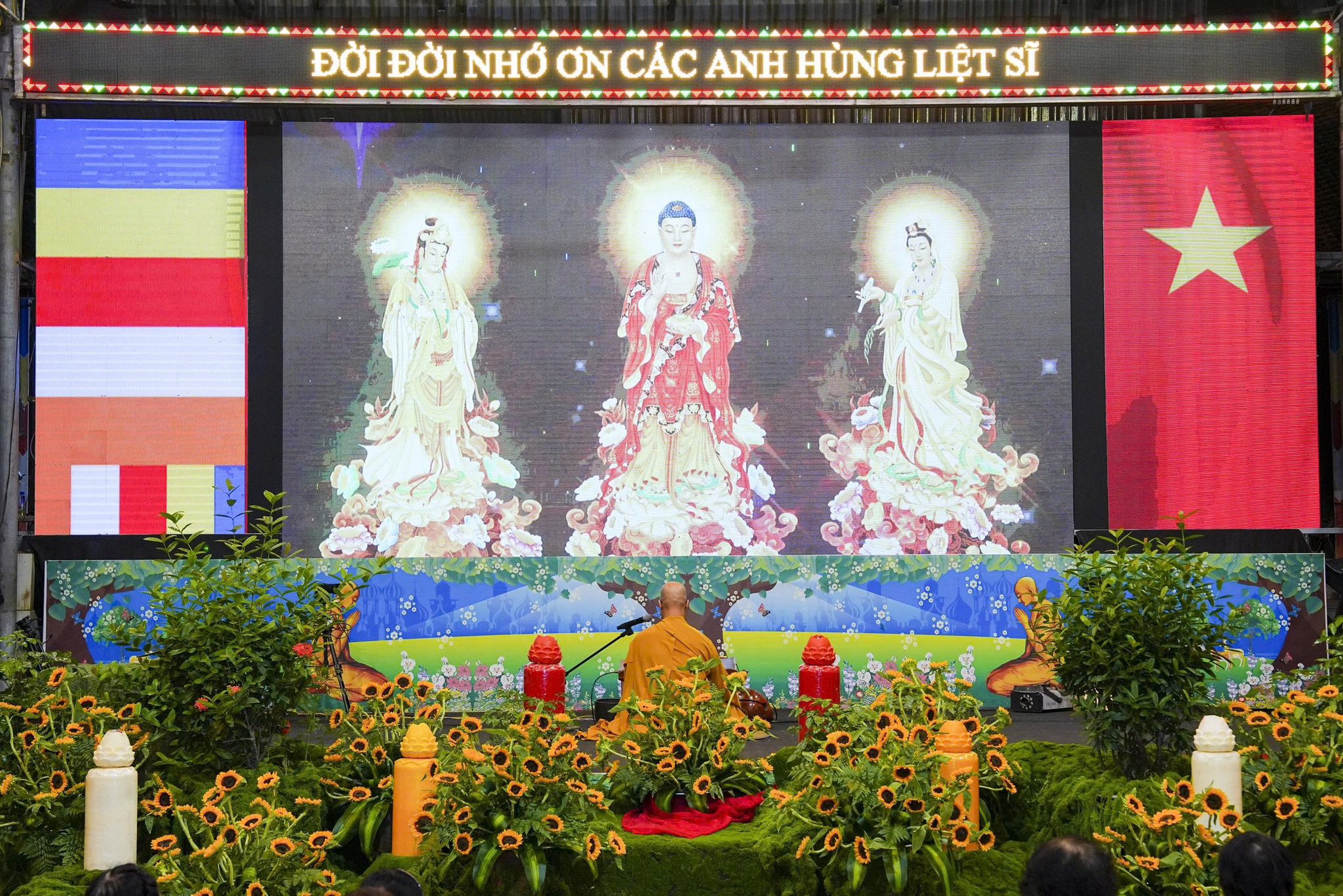 Ngay sau khi chương trình nghệ thuật kết thúc, toàn thể đaị chúng đã lắng đọng tâm tư, nhất tâm dâng hương tưởng niệm, tụng kinh A Di Đà, cầu nguyện cho hương linh các anh hùng liệt sĩ, chiến sĩ trận vong, đồng bào tử nạn được siêu sinh về miền tịnh cảnh, cầu nguyện cho Đất nước được thanh bình, phồn thịnh, nhân dân được ấm no, hạnh phúc và cầu nguyện cho các bà mẹ Việt Nam anh hùng, các thương bệnh binh, thân nhân gia đình các anh hùng liệt sĩ được mạnh khỏe, hạnh phúc. Pháp hội không chỉ mang ý nghĩa về mặt tâm linh mà còn mang một ý nghĩa rất cao thượng và nhân văn, nhằm giáo dục, nhắc nhở thế hệ trẻ về truyền thống yêu nước, truyền thống cách mạng, lòng tự hào dân tộc và tinh thần tri ân, báo ân của đạo Phật luôn được đặt lên hàng đầu.