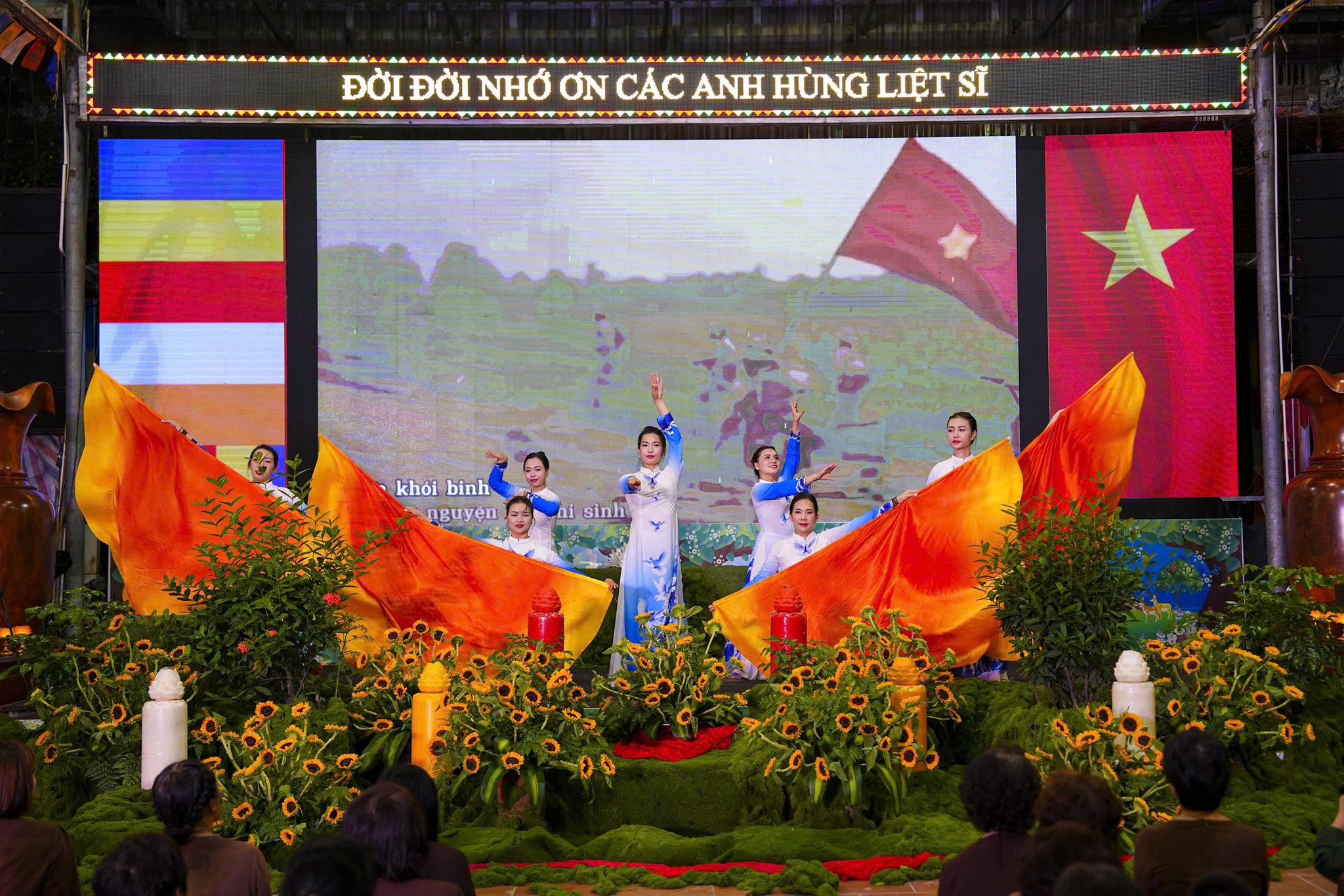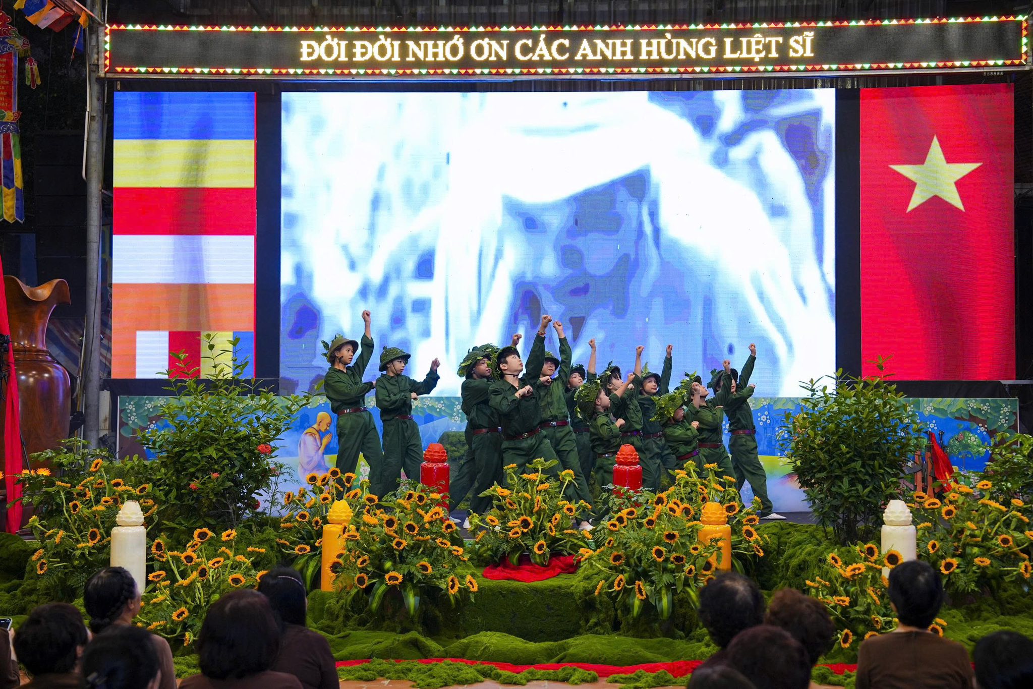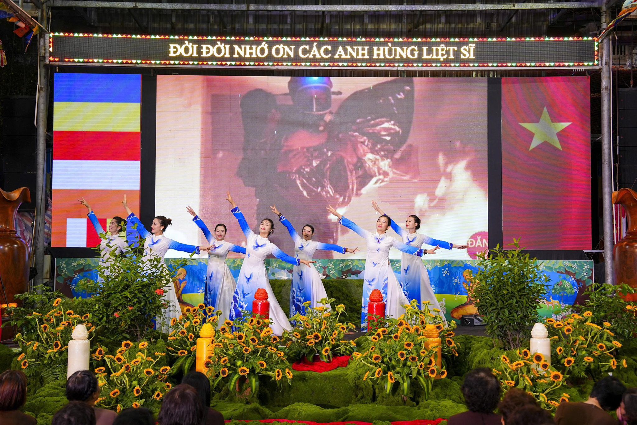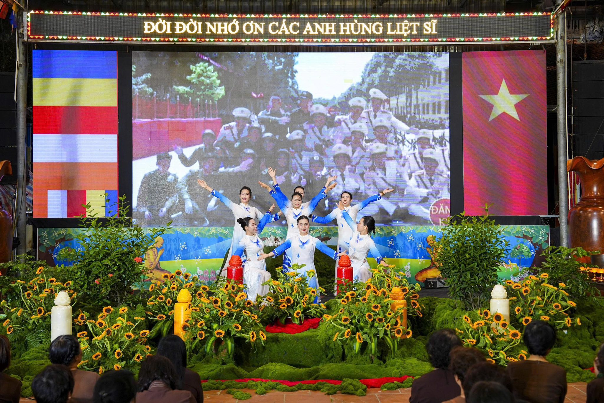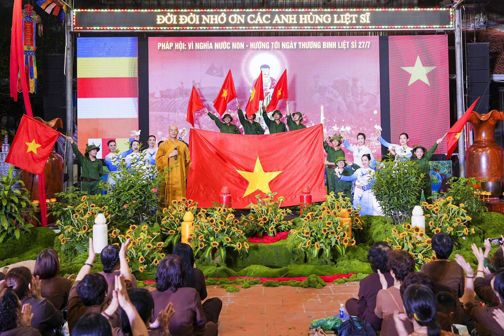 Ngay sau khi chương trình nghệ thuật kết thúc, toàn thể đaị chúng đã lắng đọng tâm tư, nhất tâm dâng hương tưởng niệm, tụng kinh A Di Đà, cầu nguyện cho hương linh các anh hùng liệt sĩ, chiến sĩ trận vong, đồng bào tử nạn được siêu sinh về miền tịnh cảnh, cầu nguyện cho Đất nước được thanh bình, phồn thịnh, nhân dân được ấm no, hạnh phúc và cầu nguyện cho các bà mẹ Việt Nam anh hùng, các thương bệnh binh, thân nhân gia đình các anh hùng liệt sĩ được mạnh khỏe, hạnh phúc. Pháp hội không chỉ mang ý nghĩa về mặt tâm linh mà còn mang một ý nghĩa rất cao thượng và nhân văn, nhằm giáo dục, nhắc nhở thế hệ trẻ về truyền thống yêu nước, truyền thống cách mạng, lòng tự hào dân tộc và tinh thần tri ân, báo ân của đạo Phật luôn được đặt lên hàng đầu.