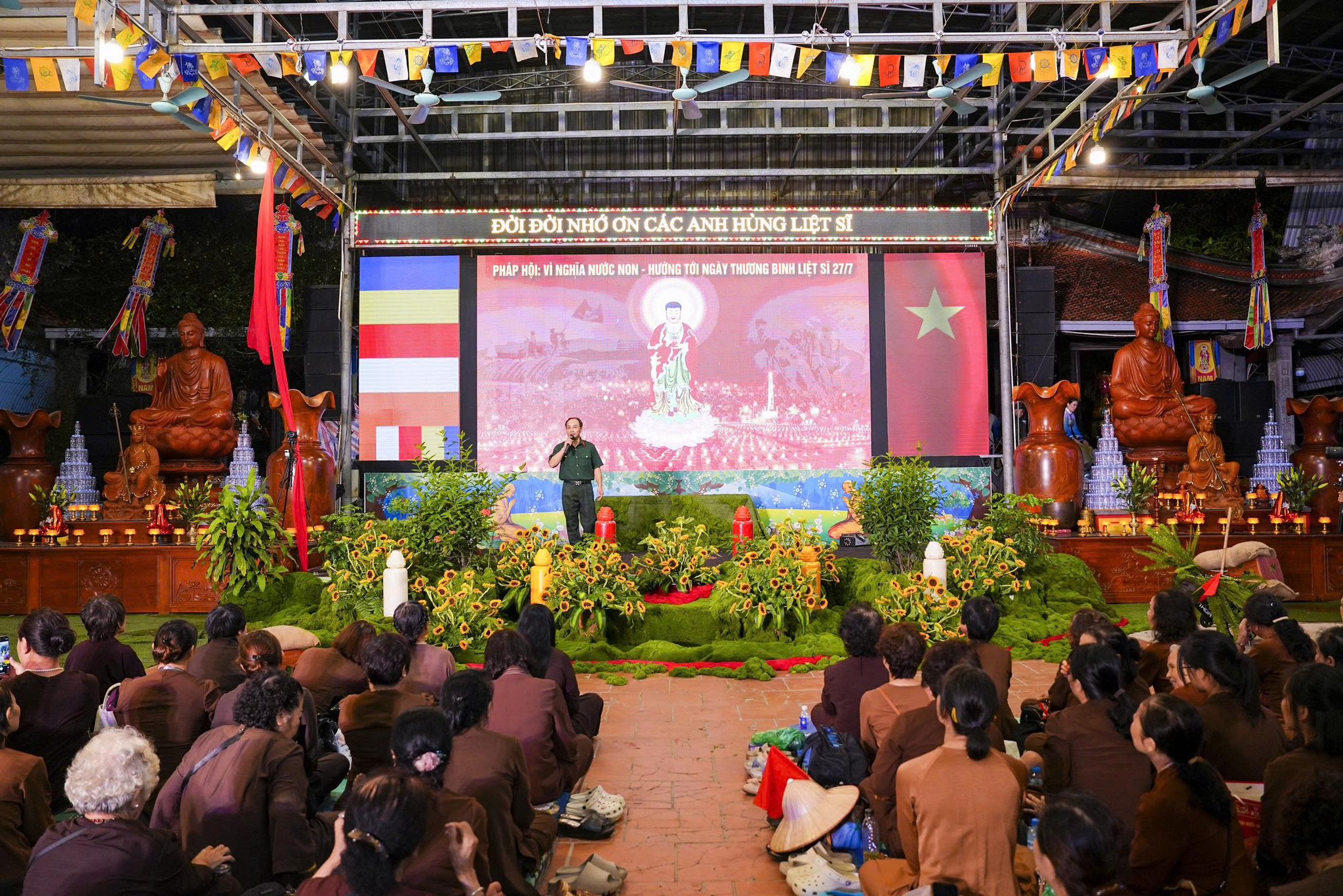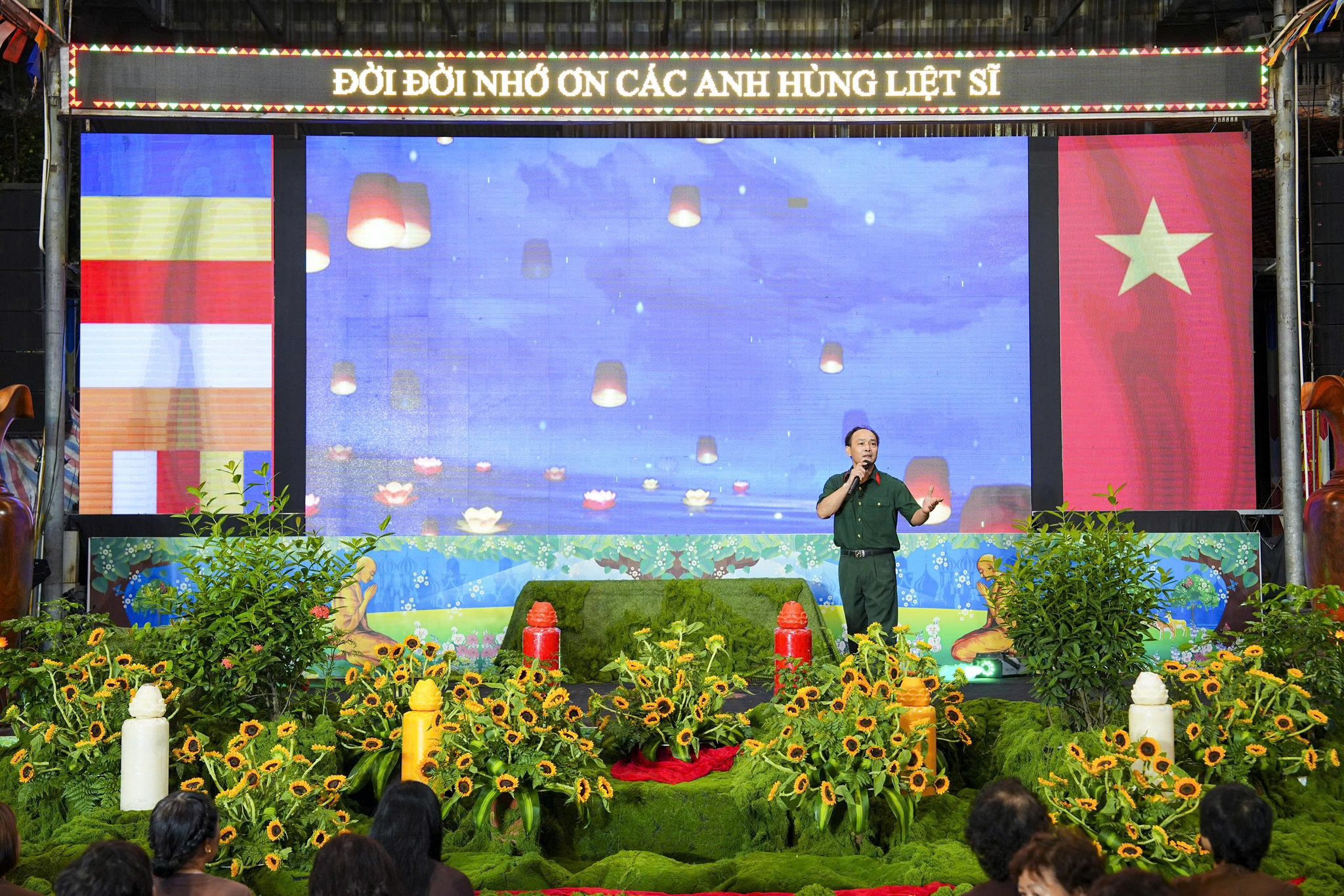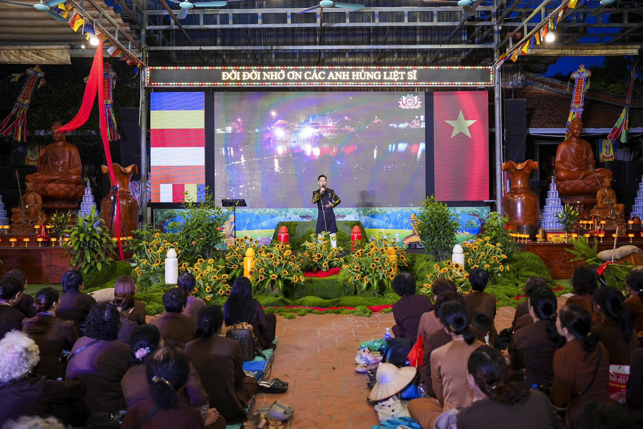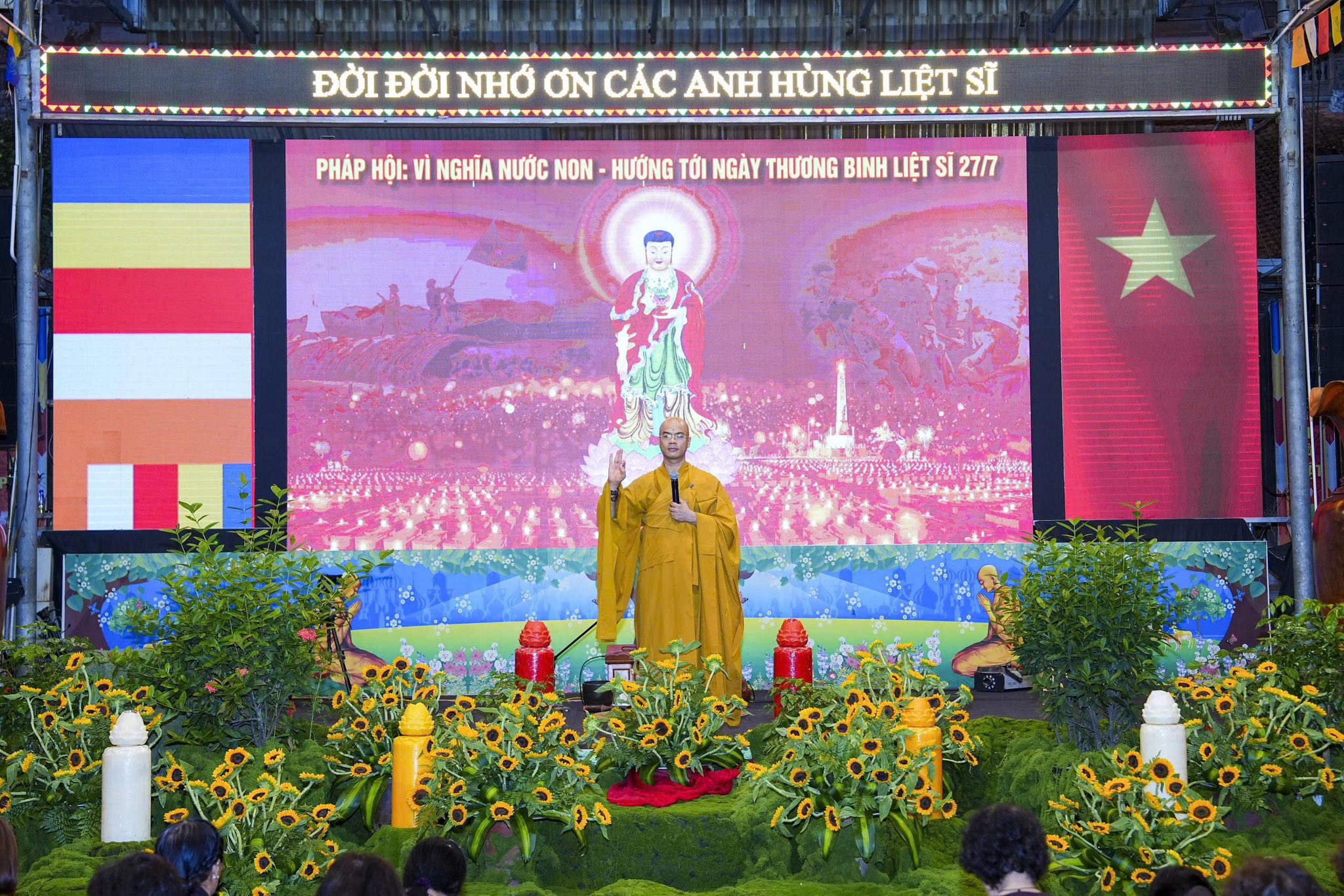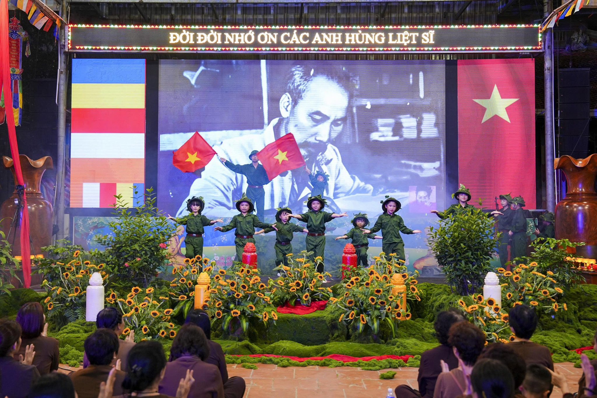Ngay sau khi chương trình nghệ thuật kết thúc, toàn thể đaị chúng đã lắng đọng tâm tư, nhất tâm dâng hương tưởng niệm, tụng kinh A Di Đà, cầu nguyện cho hương linh các anh hùng liệt sĩ, chiến sĩ trận vong, đồng bào tử nạn được siêu sinh về miền tịnh cảnh, cầu nguyện cho Đất nước được thanh bình, phồn thịnh, nhân dân được ấm no, hạnh phúc và cầu nguyện cho các bà mẹ Việt Nam anh hùng, các thương bệnh binh, thân nhân gia đình các anh hùng liệt sĩ được mạnh khỏe, hạnh phúc. Pháp hội không chỉ mang ý nghĩa về mặt tâm linh mà còn mang một ý nghĩa rất cao thượng và nhân văn, nhằm giáo dục, nhắc nhở thế hệ trẻ về truyền thống yêu nước, truyền thống cách mạng, lòng tự hào dân tộc và tinh thần tri ân, báo ân của đạo Phật luôn được đặt lên hàng đầu.