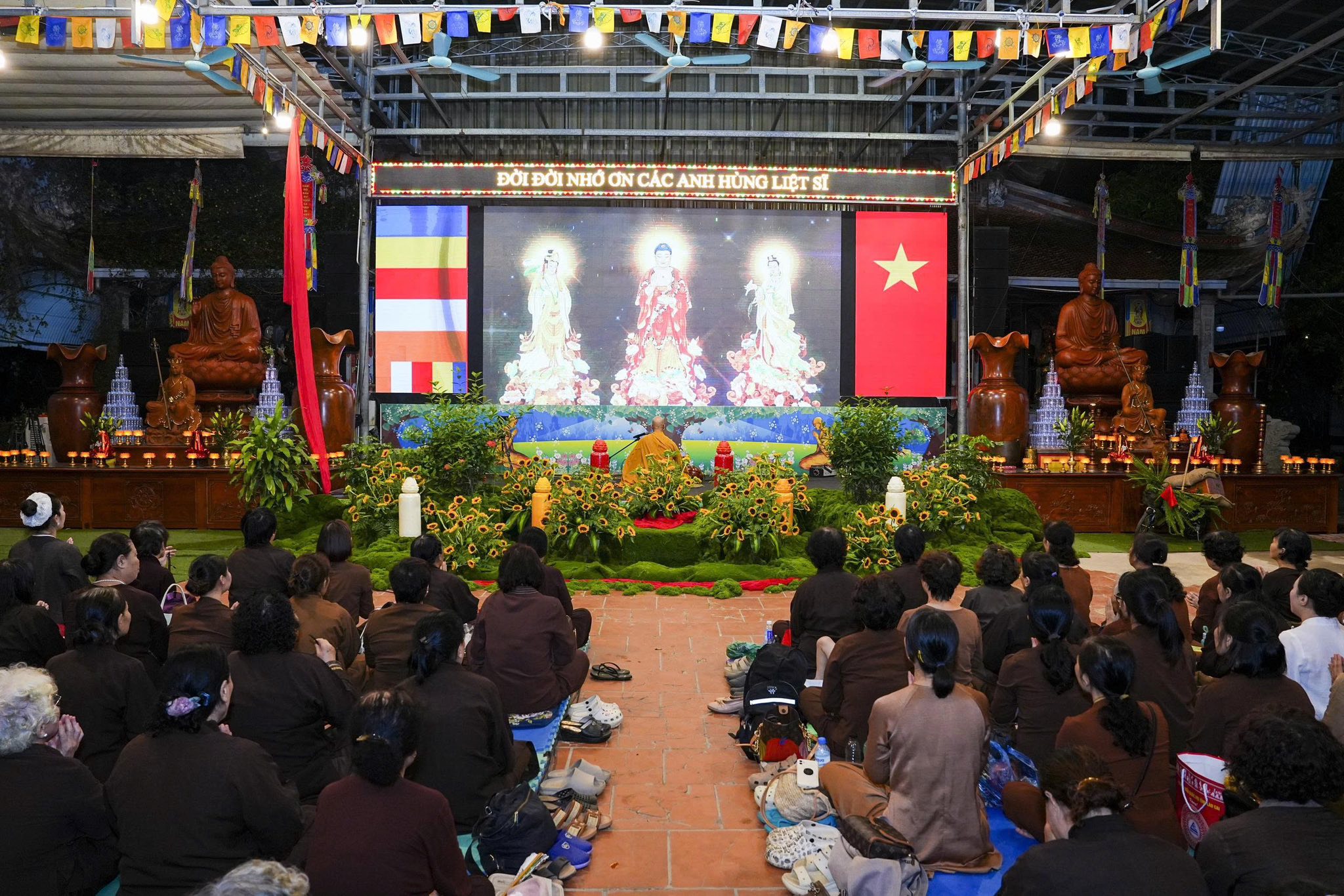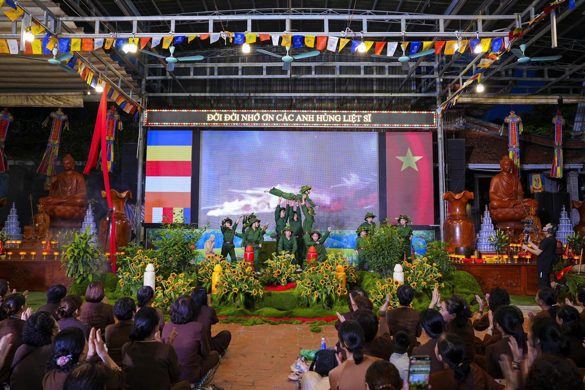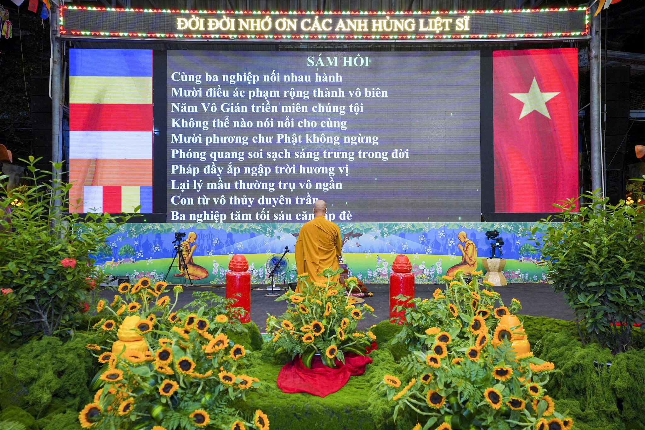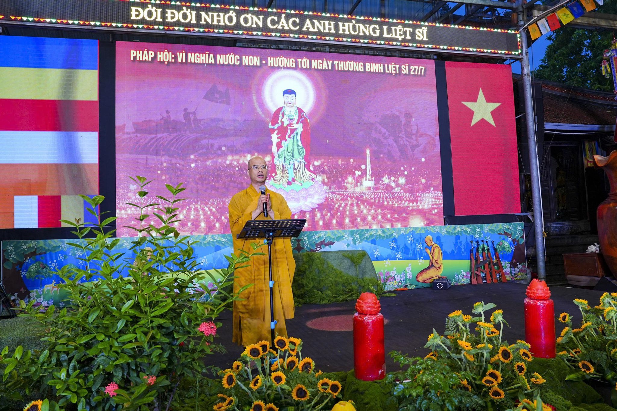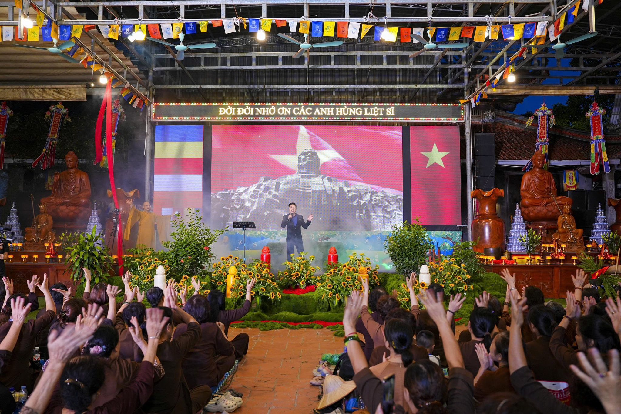 Ngay sau khi chương trình nghệ thuật kết thúc, toàn thể đaị chúng đã lắng đọng tâm tư, nhất tâm dâng hương tưởng niệm, tụng kinh A Di Đà, cầu nguyện cho hương linh các anh hùng liệt sĩ, chiến sĩ trận vong, đồng bào tử nạn được siêu sinh về miền tịnh cảnh, cầu nguyện cho Đất nước được thanh bình, phồn thịnh, nhân dân được ấm no, hạnh phúc và cầu nguyện cho các bà mẹ Việt Nam anh hùng, các thương bệnh binh, thân nhân gia đình các anh hùng liệt sĩ được mạnh khỏe, hạnh phúc. Pháp hội không chỉ mang ý nghĩa về mặt tâm linh mà còn mang một ý nghĩa rất cao thượng và nhân văn, nhằm giáo dục, nhắc nhở thế hệ trẻ về truyền thống yêu nước, truyền thống cách mạng, lòng tự hào dân tộc và tinh thần tri ân, báo ân của đạo Phật luôn được đặt lên hàng đầu.