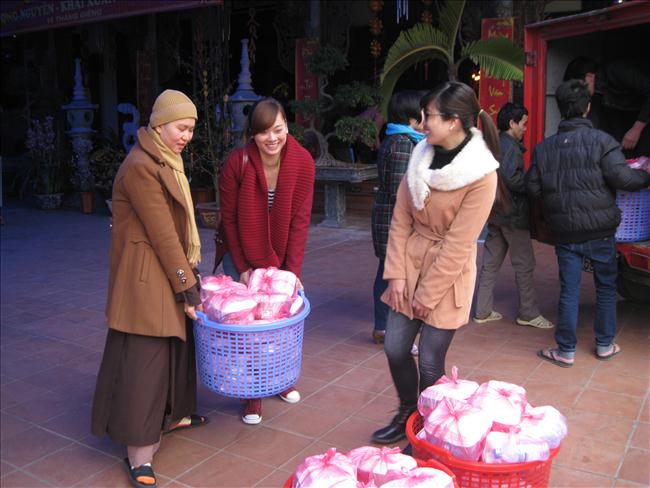 Với mong muốn mang lại niềm hạnh phúc và cảm giác được sẻ chia với những người bệnh đang điều trị tại nơi đây, hàng tháng cứ vào dịp 14 âm lịch, chư Ni và Phật tử chùa Tăng Phúc lại mang những suất cơm chay được chế biến cẩn thận, sạch sẽ và chu đáo đến để tặng cho những người bệnh. Đây đã là năm thứ ba chùa Tăng Phúc duy trì hoạt động ý nghĩa này, bởi đó là nét đẹp cao quý nhất của người Việt “Nhiễu điều phủ lấy giá gương – Người trong một nước phải thương nhau cùng”; Hơn nữa cũng chính là tinh thần “bố thí” trong Phật giáo: “Buổi sáng giúp người thêm niềm vui – Buổi chiều giúp người vơi nỗi khổ”. Mỗi suất cơm chay tuy đơn giản, nhưng ấm áp tình người trong tiết trời rét mướt đầu xuân.