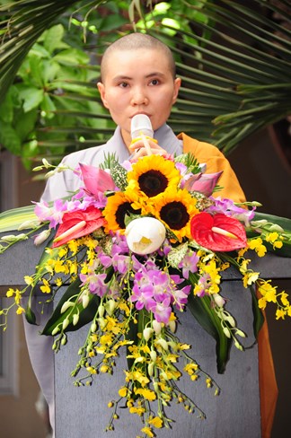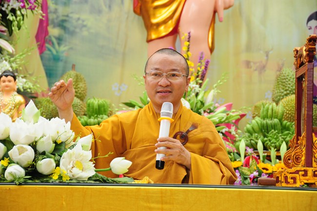Trước đó, nhận lời mời của Ban tổ chức, Thượng tọa Tiến sỹ Thích Nhật Từ đã quang lâm pháp tòa và có thời pháp thoại tới hàng Phật tử về lịch sử cuộc đời Đức Phật Thích Ca Mâu Ni và ý nghĩa của nghi thức tắm Phật trong Đại lễ Phật Đản.