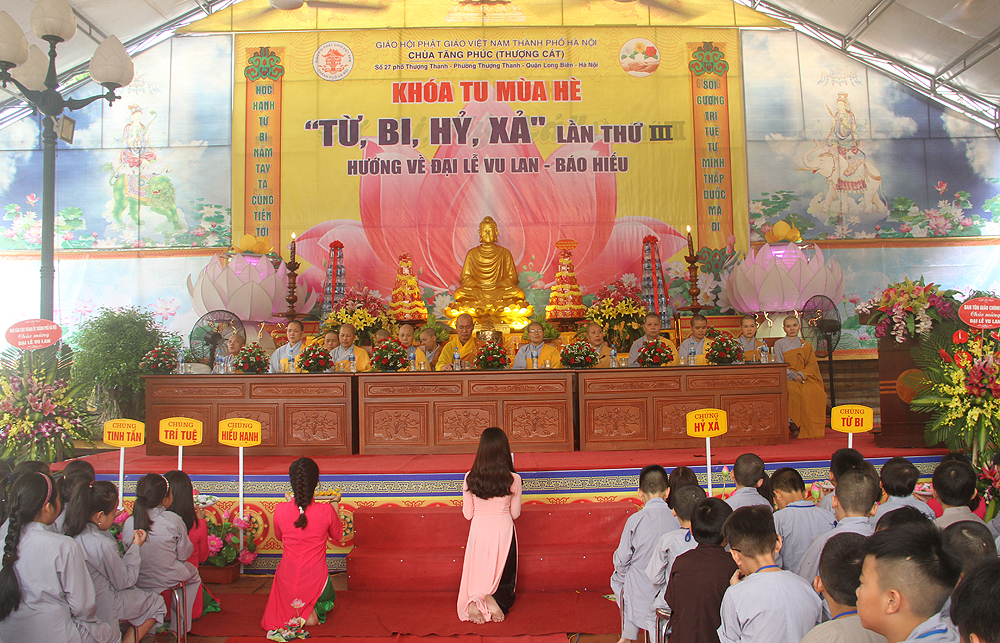 Quang lâm chứng minh và tham dự có ĐĐ.Thích Quảng Phúc – Trụ trì chùa Dương Đình (huyện Gia Lâm, Tp.Hà Nội); Ni sư Thích Đàm Bình – Ủy viên TT BTS kiêm Phó trưởng ban Đặc trắc Ni giới GHPGVN Tp.Hà Nội; Ni sư Thích Đàm Hinh – UV BTS GHPGVN Tp.Hà Nội; Ni sư Thích Đàm Toán – Phó BTS GHPGVN quận Long Biên, trụ trì chùa Mai Phúc (quận Long Biên, Tp.Hà Nội); Sư thầy Thích Đồng Hòa – Ủy viên Ban Văn hóa, Ban TTTT GHPGVN, trụ trì chùa Tăng Phúc, Trưởng ban tổ chức, chư Tôn đức Tăng ni, Phật tử và đông đảo tu sinh cùng các bậc phụ huynh đã về tham dự.