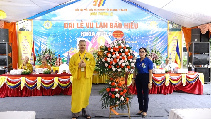 Chứng minh buổi lễ có ĐĐ. Thích Thanh Chính – Ủy viên BTS GHPGVN TP. Hà Nội, Trưởng ban BTS GHPGVN huyện Mê Linh, Trưởng ban tổ chức; ĐĐ. Thích Thanh Công – Phó trưởng ban Thường trực BTS GHPGVN huyện Mê Linh; ĐĐ. Thích Nguyên Chân – Ủy viên Thường trực BTS, Trưởng ban kiểm soát – ban Hoằng Pháp GHPGVN huyện Mê Linh; Ni sư Thích Đàm Tuệ – Nguyên Ủy viên BTS GHPGVN TP. Hà Nội, Nguyên trưởng ban BTS GHPGVN huyện Mê Linh cùng chư Tôn đức Tăng Ni trụ trì trên địa bàn huyện về tham dự.