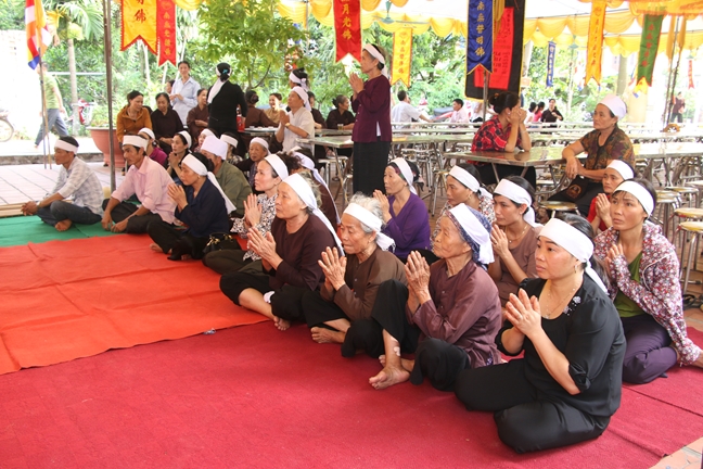 Đặc biệt Đại lễ chung thất được cử hành theo nghi thức cổ truyền không mang tính chất hành chính, Lễ truy tiến Giác linh cố Ni Trưởng lão Thích Đàm Yết được thực hiện với các thời khóa như: Tụng Kinh Địa Tạng, Từ Bi Thủy Sám, Lương Hoàng Sám Pháp, Kinh Di Đà…Nghi thức cúng Phật, nhiễu mộ, cúng Tổ và cúng giác linh cố Ni trưởng Thích Đàm Yết. Nghi lễ do các thầy trong BTS Phật giáo huyện Mê Linh làm chủ sám. Đại lễ chung thất Cố Ni trưởng Thích Đàm Yết được tổ chức trong không khí trang nghiêm và thành kính.