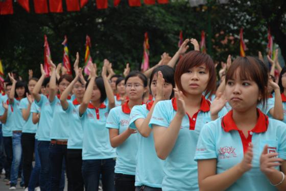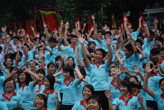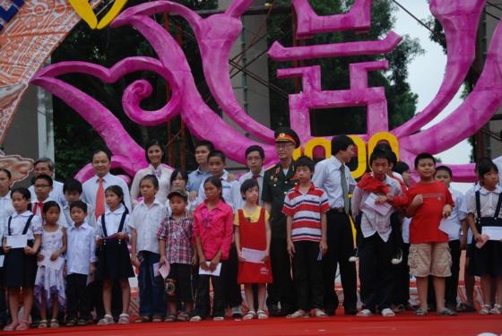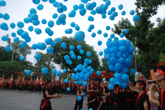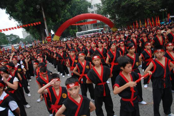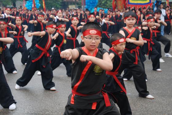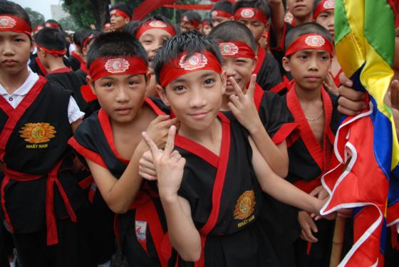 Các em thiếu nhi thủ đô cũng biểu diễn những động tác võ thuật khéo léo, mạnh khỏe.
