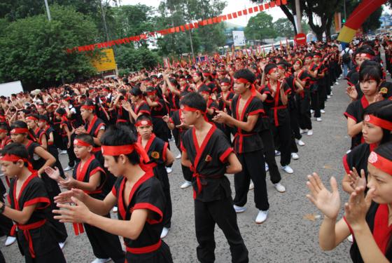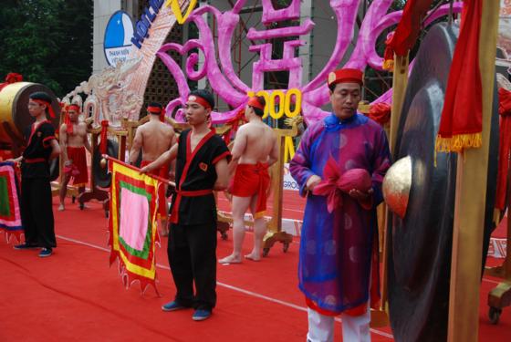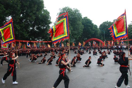 Sau đó, màn trống khai hội mở màn cho tiết mục trình diễn võ thuật của 1.000 môn sinh phái Nhất Nam với những pha biểu diễn võ thuật dũng mãnh và đẹp mắt của các võ sinh.
