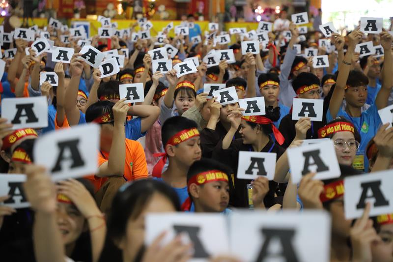 Các trại sinh đã hưởng ứng tham gia trả lời câu hỏi rất nhiệt tình và sôi động. Trải qua 30 câu trắc nghiệm ban tổ chức đã chọn được 3 bạn đại diện cho tỉnh Hà Giang, Thái Nguyên và Bắc Giang vào vòng chung kết với phần thi vấn đáp do Đại đức chánh chủ khảo cùng chư Tôn đức trong hội đồng giám khảo đưa ra.