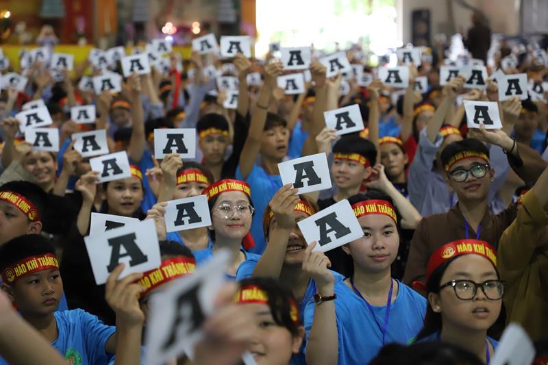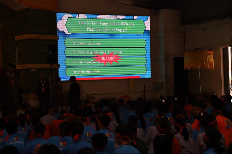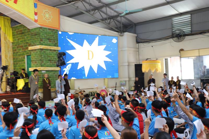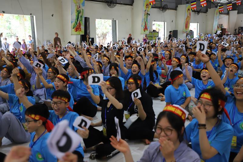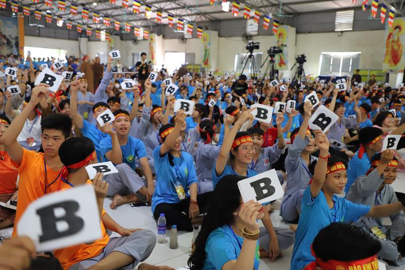 Các trại sinh đã hưởng ứng tham gia trả lời câu hỏi rất nhiệt tình và sôi động. Trải qua 30 câu trắc nghiệm ban tổ chức đã chọn được 3 bạn đại diện cho tỉnh Hà Giang, Thái Nguyên và Bắc Giang vào vòng chung kết với phần thi vấn đáp do Đại đức chánh chủ khảo cùng chư Tôn đức trong hội đồng giám khảo đưa ra.
