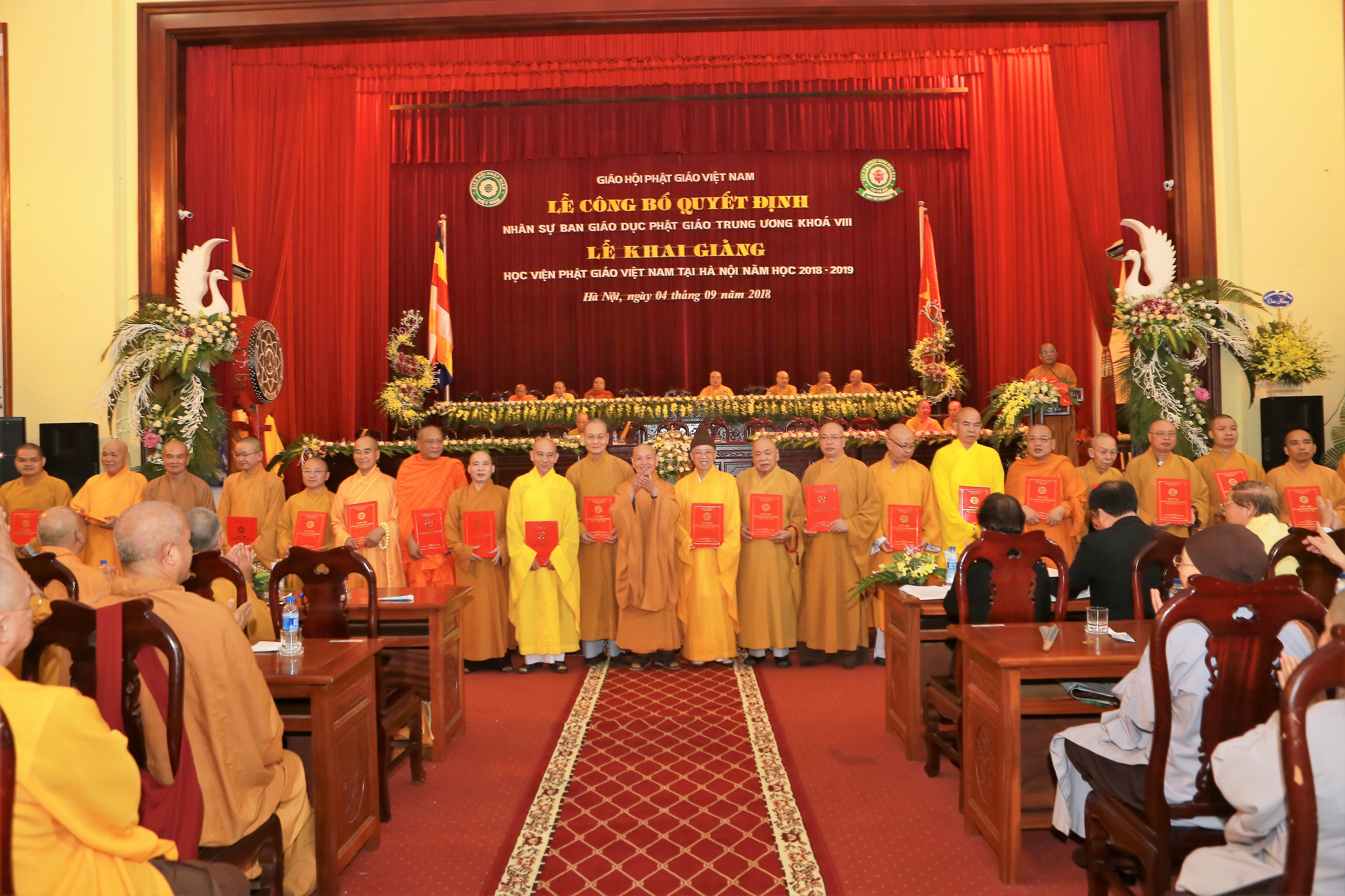 Sáng nay, ngày 4/9/2018 (tức ngày 25/7/Mậu Tuất), trong không khí cả nước tưng bừng bước vào năm học mới,Ban Gíao dục Phật giáo TƯ kết hợp với Học Viện Phật Gíao Việt Nam long trọng tổ chức Lễ công bố quyết định chuẩn y nhân sự Ban Giáo dục Phật giáo Trung Ương (GDPGTƯ) khóa VIII và Lễ Khai giảng năm học 2018 – 2019  của  Học viện Phật giáo Việt Nam- xã Phù Linh, huyện Sóc Sơn, Tp Hà Nội.