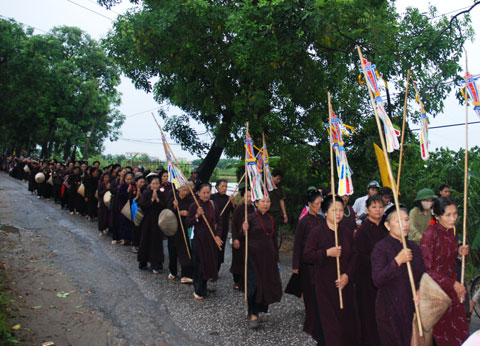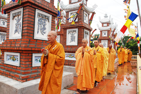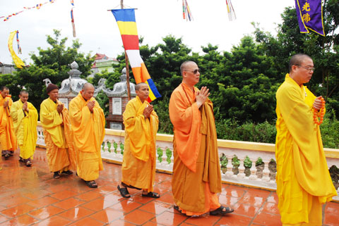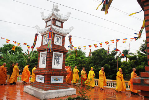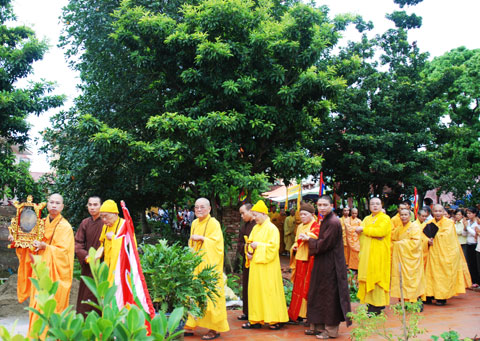 Xá lợi chư Tăng được rước và cung nghinh trọng thể từ nghĩa trang xã Tây Tựu về nhập tháp tại vườn tháp chùa Hưng Khánh với các nghi lễ trọng thể theo truyền thống của Phật giáo Việt Nam.