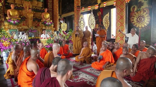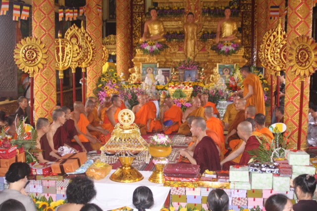 Đúng 8h00 phút đại lễ được chính thức bắt đầu, sau khi thực hiện nghi thức hành chính diễn ta tại cổng chùa Khmer, tiếp sau đó Chư Tôn Đức và các Phật tử di chuyển vào chánh điện thực hiện các nghi thức truyền thống của lễ dâng y Kathina trong Phật Giáo Nam Tông.