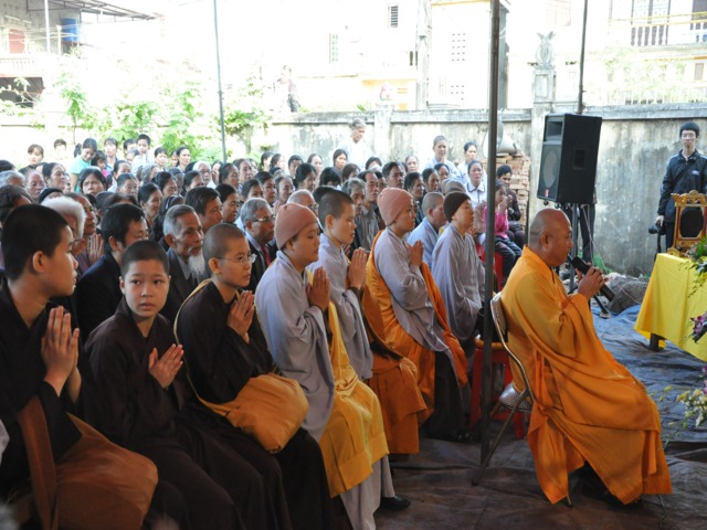 Chứng minh buổi lễ có TT.Thích Thanh Phúc – Trụ trì chùa Triệu Khánh – quận Hoàng Mai – Hà Nội; Ni sư Thích Giác Minh – Trụ trì chùa Văn Điển huyện Thanh Trì – Hà Nội; Sư Thầy Thích Diệu Tâm – Trụ trì chùa Sùng Ân cùng chư tôn đức trong địa bàn và đông đảo Phật tử nhân dân địa phương cùng về tham dự.