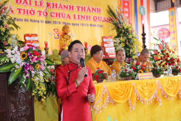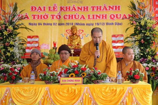 Tiếp đó, phát biểu cảm tạ của sư thầy Thích Đồng Hòa – trụ trì chùa Linh Quang bày tỏ tấm lòng tri ân đến với chư Tôn đức cùng liệt quý vị đã quang lâm chứng minh tham dự buổi lễ Khánh thành nhà thờ Tổ, đồng thời cảm ơn về sự nhiệt tâm trợ lực của chính quyền địa phương và các ban ngành đoàn thể, bằng tất cả tài lực, vật lực, nhân lực… đã cùng nhà chùa và nhân dân Phật tử xây dựng khang trang nhà thờ Tổ xứng danh với vùng đất địa linh nhân kiệt.