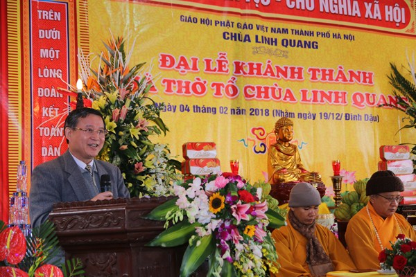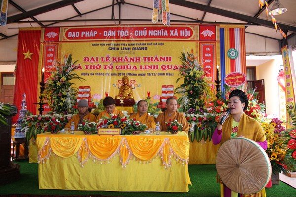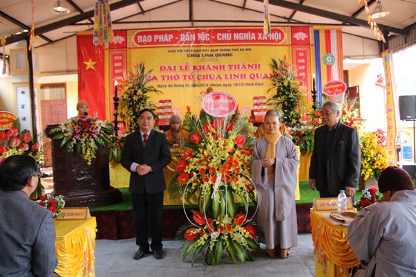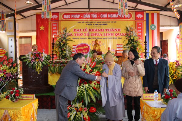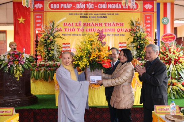 Đến chứng minh đại lễ, ĐĐ Thích Thanh Hải – Phó trưởng BTS GHPGVN huyện Đông Anh, trụ trì chùa Xuân Trạch, xã Xuân Canh, huyện Đông Anh đã biểu dương tinh thần vì đạo pháp của Sư thầy Thích Đồng Hòa. Sư Thầy đã không ngại gian nan vất vả để cùng nhân dân Phật tử tạo dựng nên chùa Linh Quang.