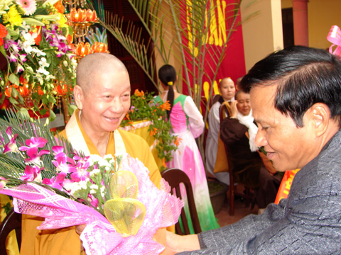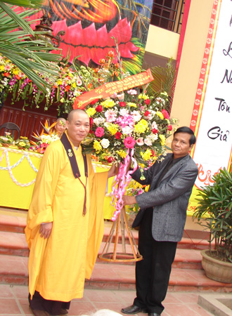 Đại diện chính quyền địa phương dâng hoa chúc mừng