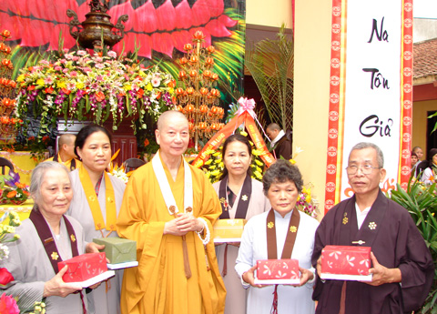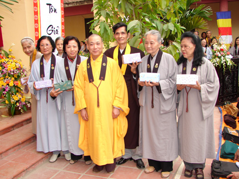 Thượng tọa Thích Bảo Nghiêm tặng quà cho các Phật tử tiêu biểu