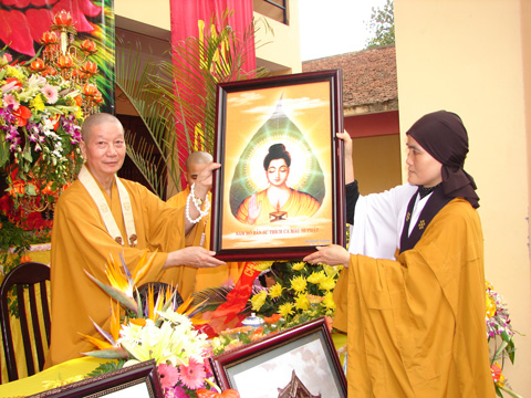 Phật tử kính tặng tranh cho Thượng tọa giáo thọ sư