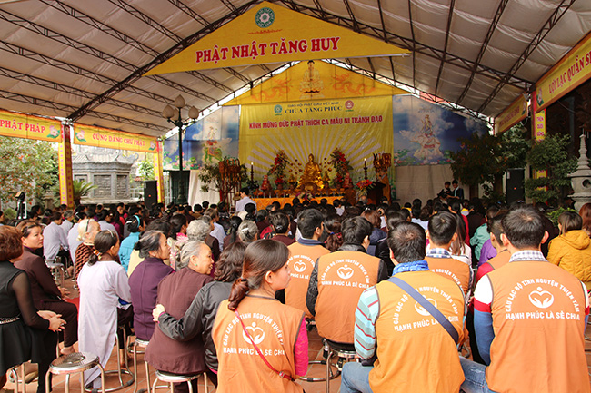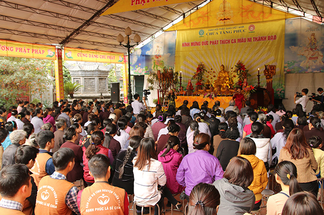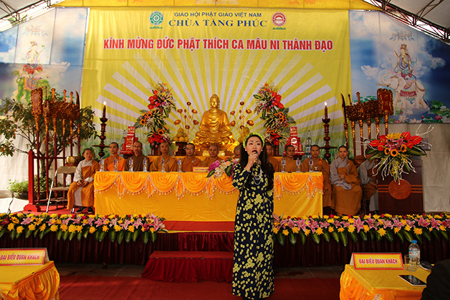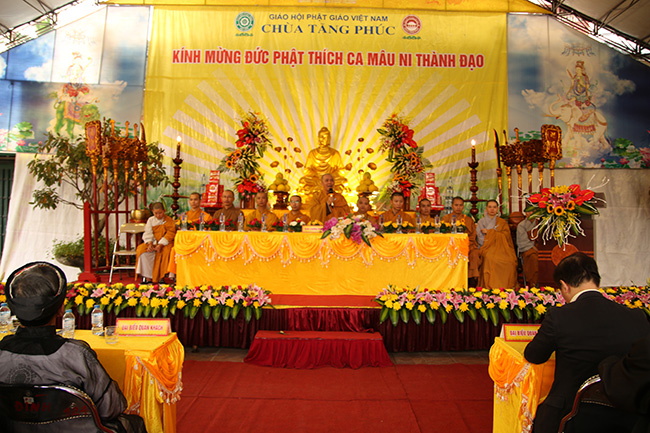 Bằng tất cả tấm lòng thành kính, chư tôn thiền đức thập phương Tăng già, Quý vị Lãnh đạo khách quý cùng toàn thể nhân dân, Phật tử, thiện nam tín nữ gần xa, hôm nay nhất tâm tổ chức Đại lễ kính mừng ngày đức Thế tôn Thích ca Mâu Ni thành đạo và Tất niên tại chùa Tăng Phúc, p. Thượng Thanh, q. Long Biên, Tp Hà Nội nhằm gợi nhắc lại phần nào hình ảnh của dòng sông Ni liên thuyền, bóng cây Bồ đề tỏa mát, ánh sáng huy hoàng của bình minh, khi sao mai vừa ló rạng cũng chính là lúc tuệ giác bừng sáng và có một con người an nhiên tịch mặc trước dao động của thế gian. Thông qua đó một lần nữa những người con Phật và tất cả chúng sinh có cơ hội tiếp xúc với đạo Phật một cách như thật, đến để mà thấy, hiểu rồi mới tin, làm chủ nhân tâm của chính mình, tự thân quyết định vận mệnh thông qua lăng kính của Nhân quả, Nghiệp báo, Bát chính đạo, Tứ diệu đế, Thập nhị nhân duyên… để phần nào chuyển hóa tự thân, xây dựng hạnh phúc gia đình.”