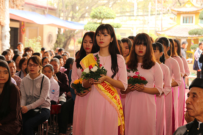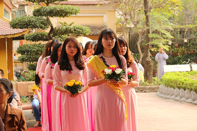 Sau đó là nghi thức dâng hoa cúng dàng của các bạn Thanh thiếu niên Phật tử chùa Tăng Phúc.