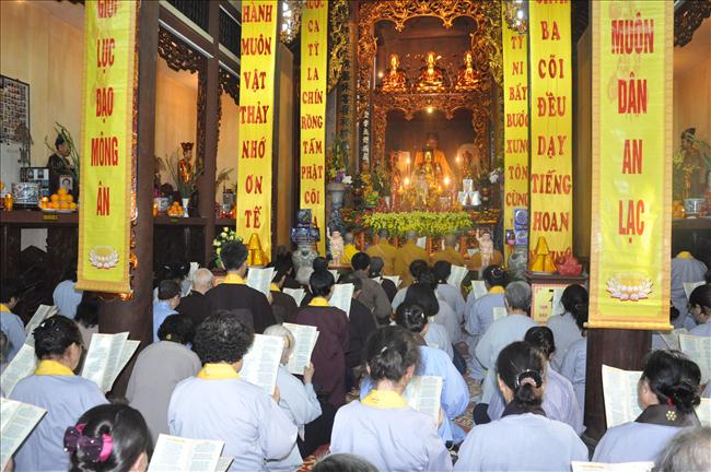 Sau khi Hòa thượng trụ trì Thích Bảo Nghiêm tuyên đọc Thông điệp Phật Đản của Đức Pháp Chủ TW GHPGVN, chư tôn đức và toàn thể hội chúng đã dâng hương bạch Phật, khai lễ, xướng tụng hồng danh Đức Bản Sư, tụng kinh Phật Đản.