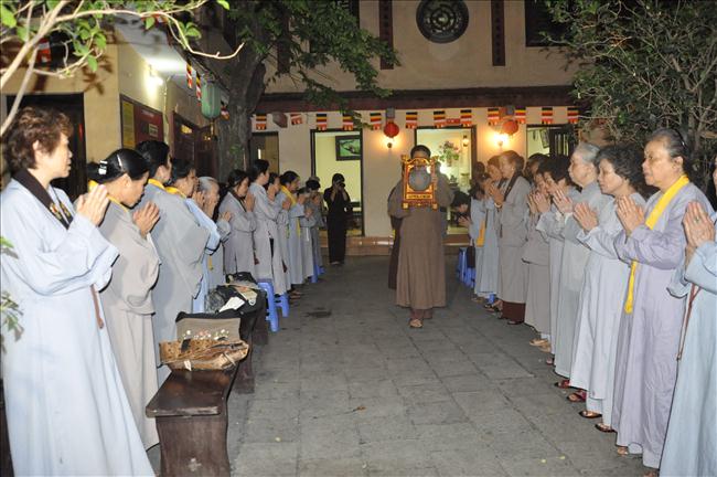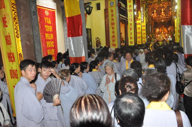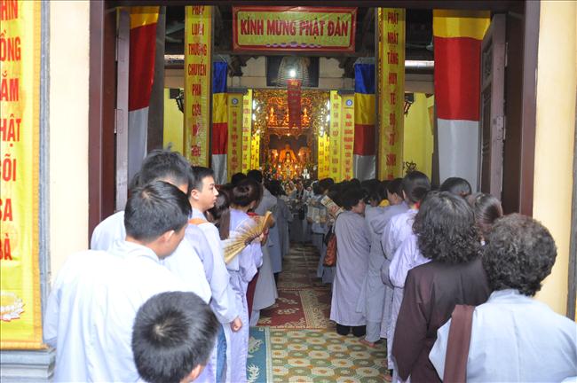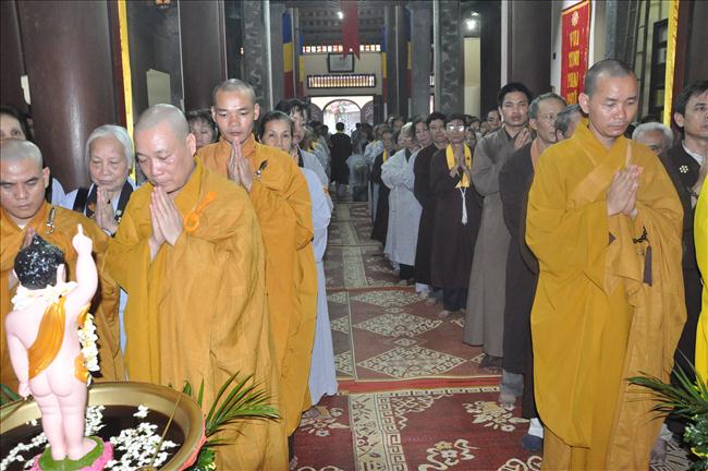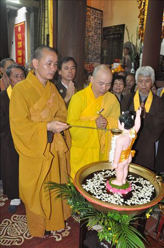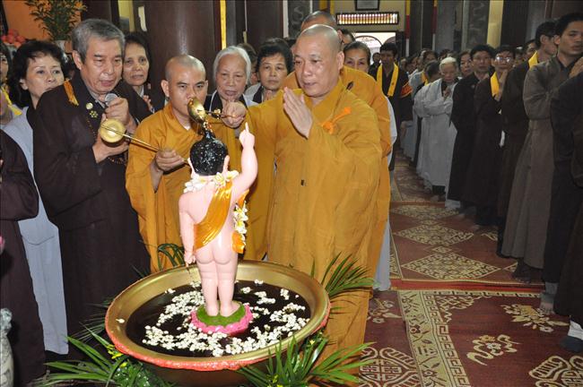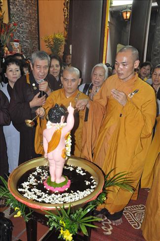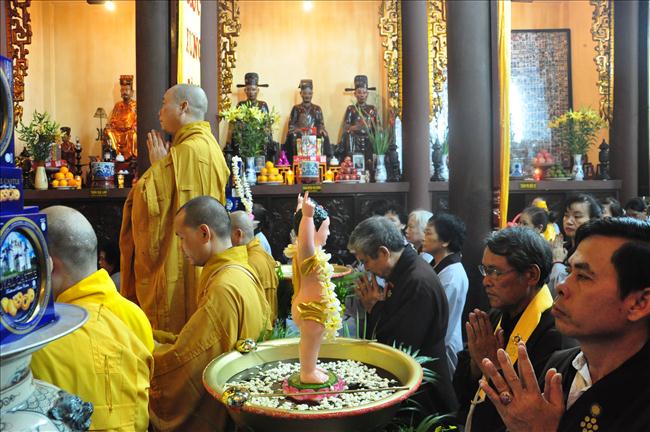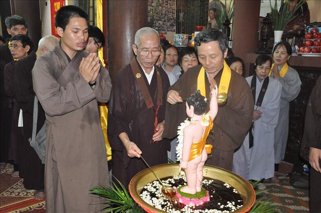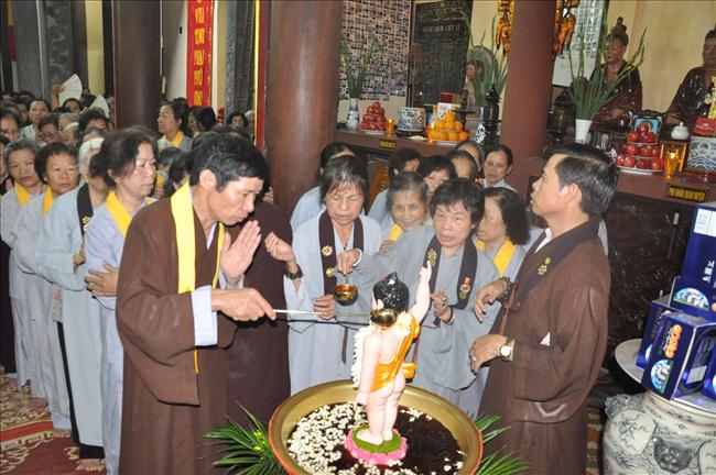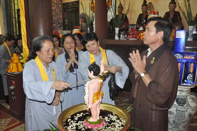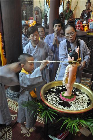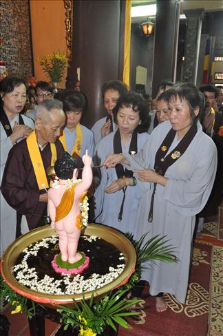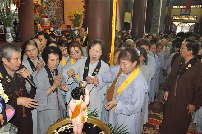 Cuối cùng, trong tiếng niệm “Nam Mô Bản Sư Thích Ca Mâu Ni Phật”, tất cả các Phật tử đã trang nghiêm chắp tay, thành kính lắng lòng xếp hàng vào làm lễ tắm Phật, để cảm nhận rõ ràng niềm hân hoan của người con Phật khi ngày Phật Đản về.
